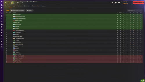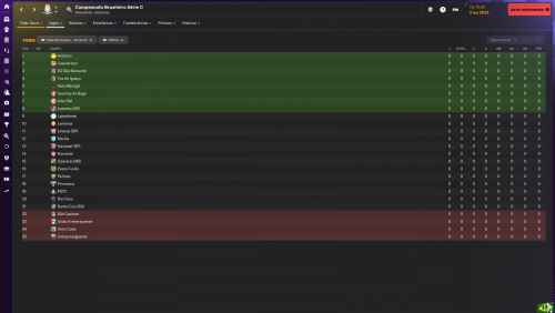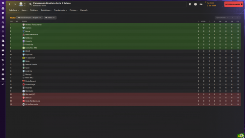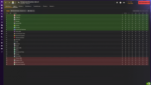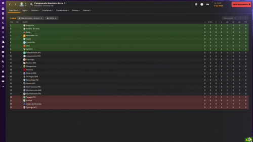 Vale informar, como a maioria das equipes não tem calendário no FM, e eu não mexi nas equipes, a maior parte dela vai vir com as informações padrões da base de dados, em alguns teste que fiz, mesmo com cerca de 5 milhões de reais no caixa desde o começo da temporada, a maior parte dos times das Séries C, D e E vão vir com orçamentos pequenos e irrisórios, para o tanto de dinheiro que possuem. Por exemplo, o maior orçamento da Série C é 185 mil mensais e o menor é cerca de 23 mil mensais. O maior da Série D é por volta de 200 mil reais mensais e, o menor é por volta de 10 mil reais. Por fim, a Série E tem como maior orçamento com cerca de 85 mil reais mensais e o menor com cerca de 10 mil reais por mês. E nesses clubes de maior orçamento, provavelmente um ou dois jogadores vão estar consumindo quase todo o dinheiro porque a IA não é muito boa em equilibrar as coisas com muito espaço. A tendência, na segunda temporada, é as equipes terem orçamentos condizentes com a nova realidade financeira delas.