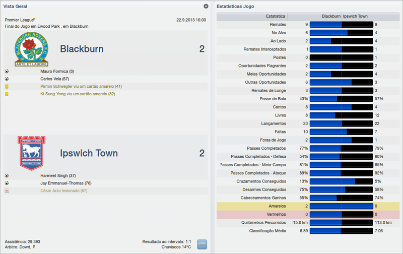 Na partida seguinte enfrentamos o Blackburn no Ewood Park. Os Rovers abriram o placar aos 3, dificultando e muito a partida. Mesmo assim, conseguimos empatar ainda no 1º tempo e jogávamos bem, quando aos 67, Carlos Vela desempatou para o Blackburn. Na jogada do gol, perdi César Arzo contundido e tivemos que jogar os minutos finais com 10 em campo. Mesmo assim, chegamos ao empate em 2 a 2.