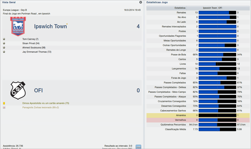 Na Liga Europa, como havia previsto, a vaga foi conseguida com tranquilidade. Só não esperava que fosse com tanta tranquilidade, já que em nenhuma das quatro partidas que vencemos, eu levei o time titular. As duas últimas rodadas servirão para dar tempo de jogo a outros jogadores e para confirmar o 1º lugar do grupo.
