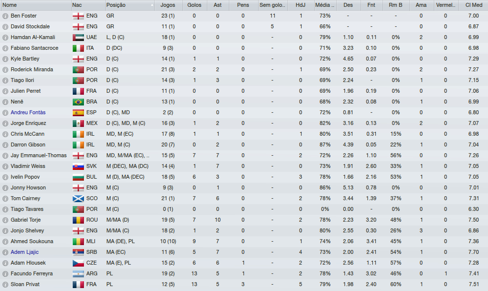 Time jogando muito e vivo em todas as competições, Fico Feliz que o Ferreyra está muito bem (valendo o investimento) e o Privat meio que queimou minha lingua (não vi nada demais nele, mas lembro que disse que pra inglaterra poderia dar certo pelos atributos).