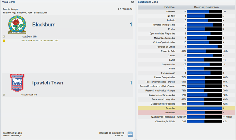 Depois da vitória, tivemos uma partida muito complicada contra o Blackburn. Não conseguimos impor o nosso jogo e no final o empate em 1 a 1 acabou sendo um bom resultado.