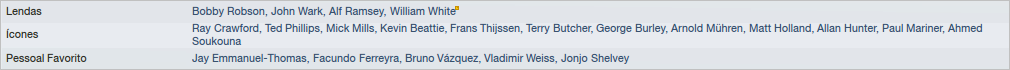 Por último existem alguns aspectos relacionados com o meu personagem no save. Meu pseudônimo, William White, tem reputação mundial e com o título da Liga dos Campeões foi incluído na lista de lendas do Ipswich, ao lado de nomes como Bob Robson e Alf Ramsey. Um desses aspectos é que na temporada 2017/18 ele superará o número de partidas de Alf Ramsey no comando do Ipswich.