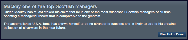 Com o título da Copa Ouro, algumas notícias me surpreenderam nos diários esportivos escoceses, haviam algumas notícias me dando como um dos maiores treinadores escoceses pela conquista, mas em nenhuma confederação, instituição de futebol, meu nome aparecia entre os grandes, talvez fosse exagero da mídia local, afinal de contas, acho que eles esperam sair novos Fergunson e Maleys a qualquer momento. Fui congratulado pela Federação, que passou uma visão bastante animada com o título e também recebi algumas palavras de apoio de jogadores da seleção pela imprensa. Fiquei feliz, afinal de contas, é bom ser campeão.