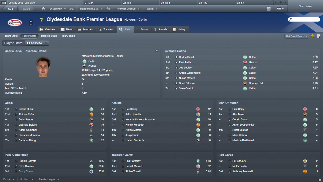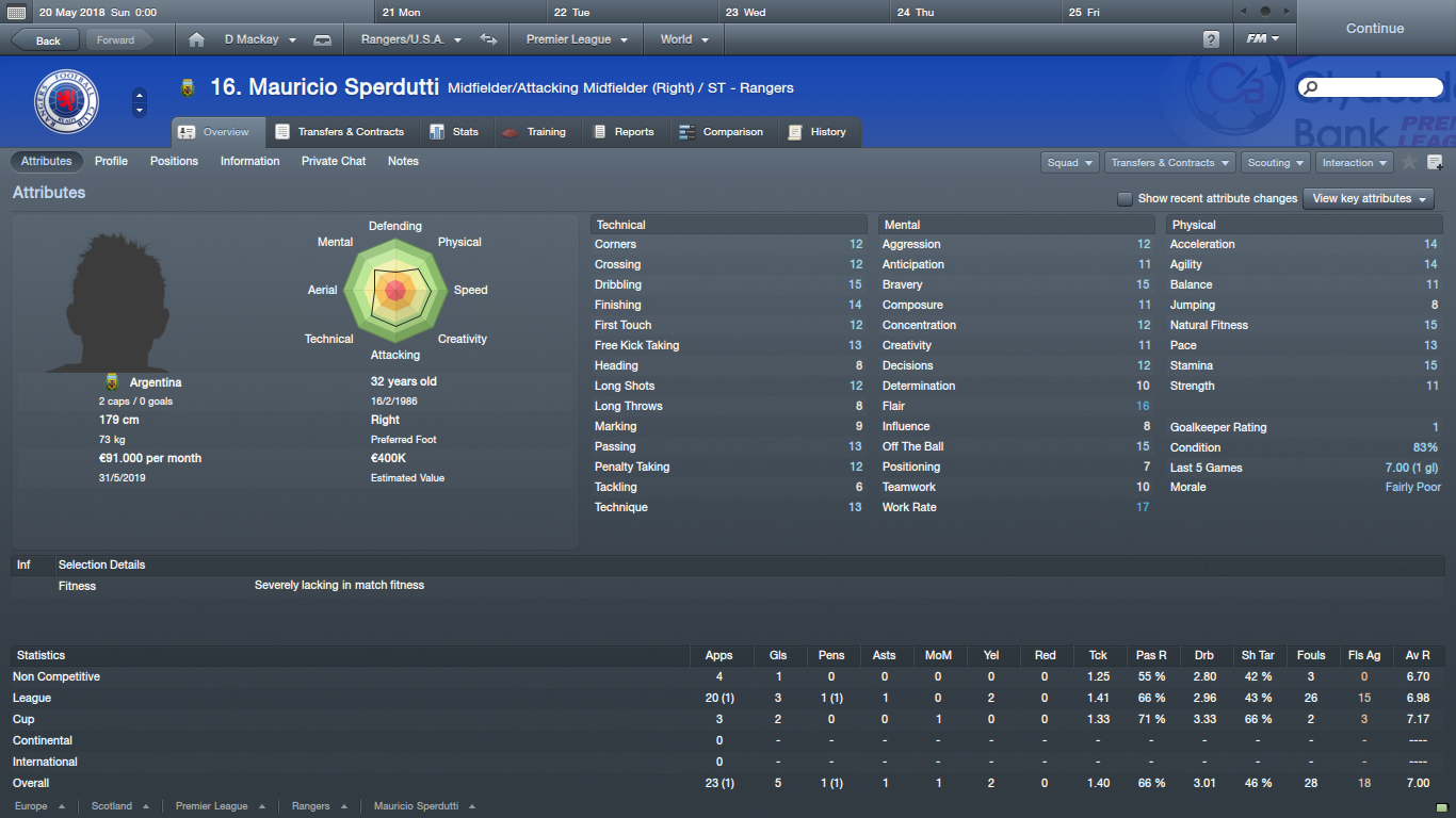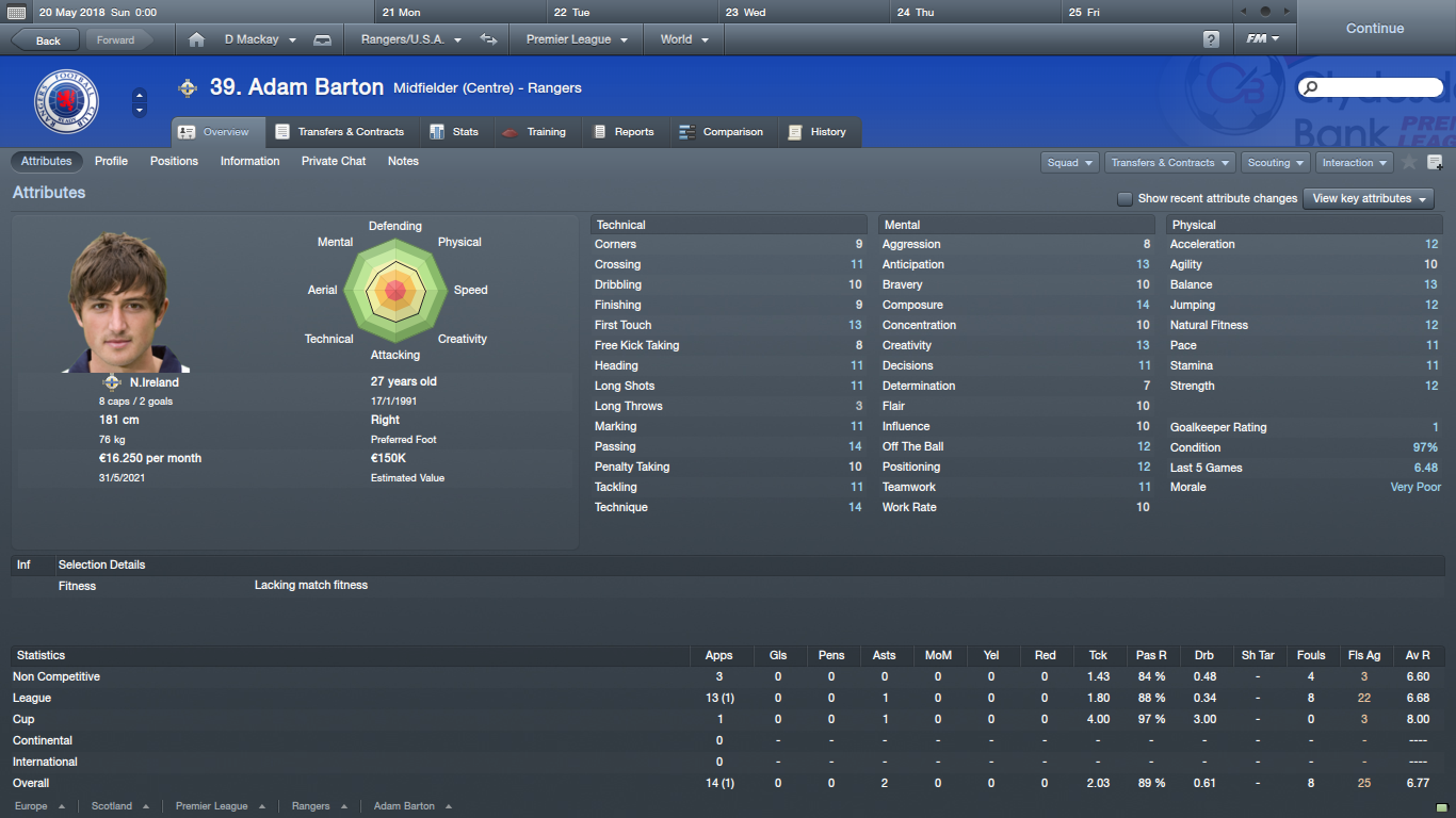 Terminamos em 8º lugar, não foi uma temporada feliz para o Gers, nem para mim, estamos numa crise financeira fudida e vemos o poderia do Hoops aumentar cada vez mais. Para terem uma noção da diferença de patamar entre as equipes, o Celtic gasta cerca de 21,5 milhões de euros por ano em salários, nós, em uma crise financeira inimaginável, terminamos a temporada com o balanço extremamente negativo e terei que tomar providências para evitar que a situação se deteriore na próxima temporada, gastamos cerca de 9 milhões de euros por temporada e isso deve diminuir para menos da metade, já que tentarei tentar a melhor folha salarial possível, deixando de ter a 2ª maior carga e passando para a 4ª ou 5ª. Estou acostumado a trabalhar sem dinheiro, mas as finanças que peguei nesse Rangers, nunca tinha enfrentado. Pela primeira vez, terei que usar de toda minha habilidade de condução financeira, para evitar que entremos numa bola de neve e minha cabeça seja cortada e eu perca minha grande chance.