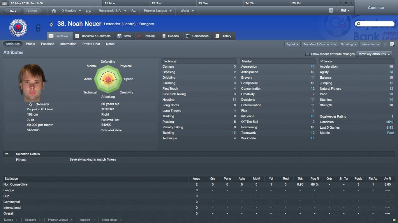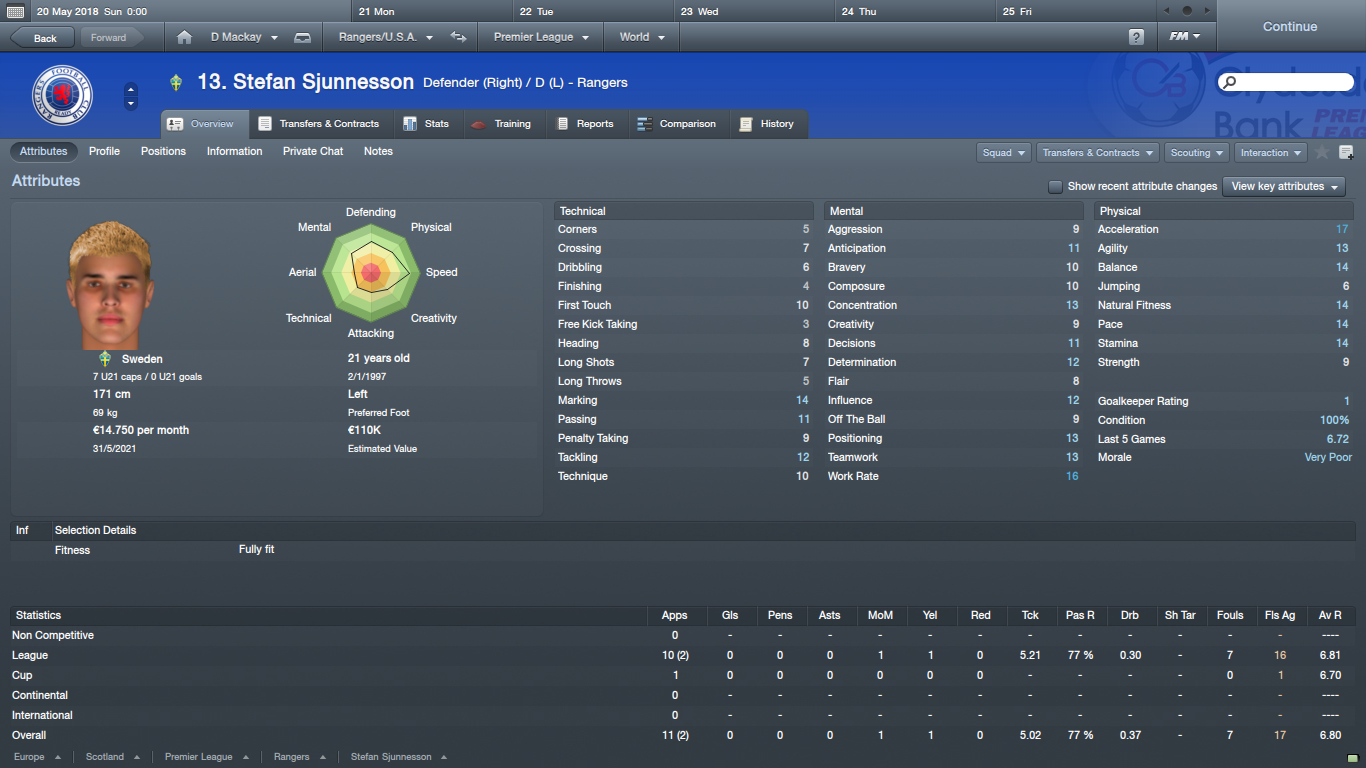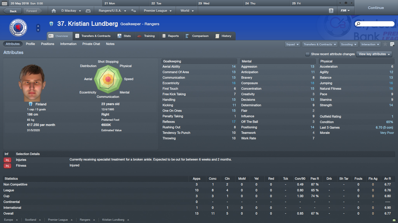 Terminamos em 8º lugar, não foi uma temporada feliz para o Gers, nem para mim, estamos numa crise financeira fudida e vemos o poderia do Hoops aumentar cada vez mais. Para terem uma noção da diferença de patamar entre as equipes, o Celtic gasta cerca de 21,5 milhões de euros por ano em salários, nós, em uma crise financeira inimaginável, terminamos a temporada com o balanço extremamente negativo e terei que tomar providências para evitar que a situação se deteriore na próxima temporada, gastamos cerca de 9 milhões de euros por temporada e isso deve diminuir para menos da metade, já que tentarei tentar a melhor folha salarial possível, deixando de ter a 2ª maior carga e passando para a 4ª ou 5ª. Estou acostumado a trabalhar sem dinheiro, mas as finanças que peguei nesse Rangers, nunca tinha enfrentado. Pela primeira vez, terei que usar de toda minha habilidade de condução financeira, para evitar que entremos numa bola de neve e minha cabeça seja cortada e eu perca minha grande chance.