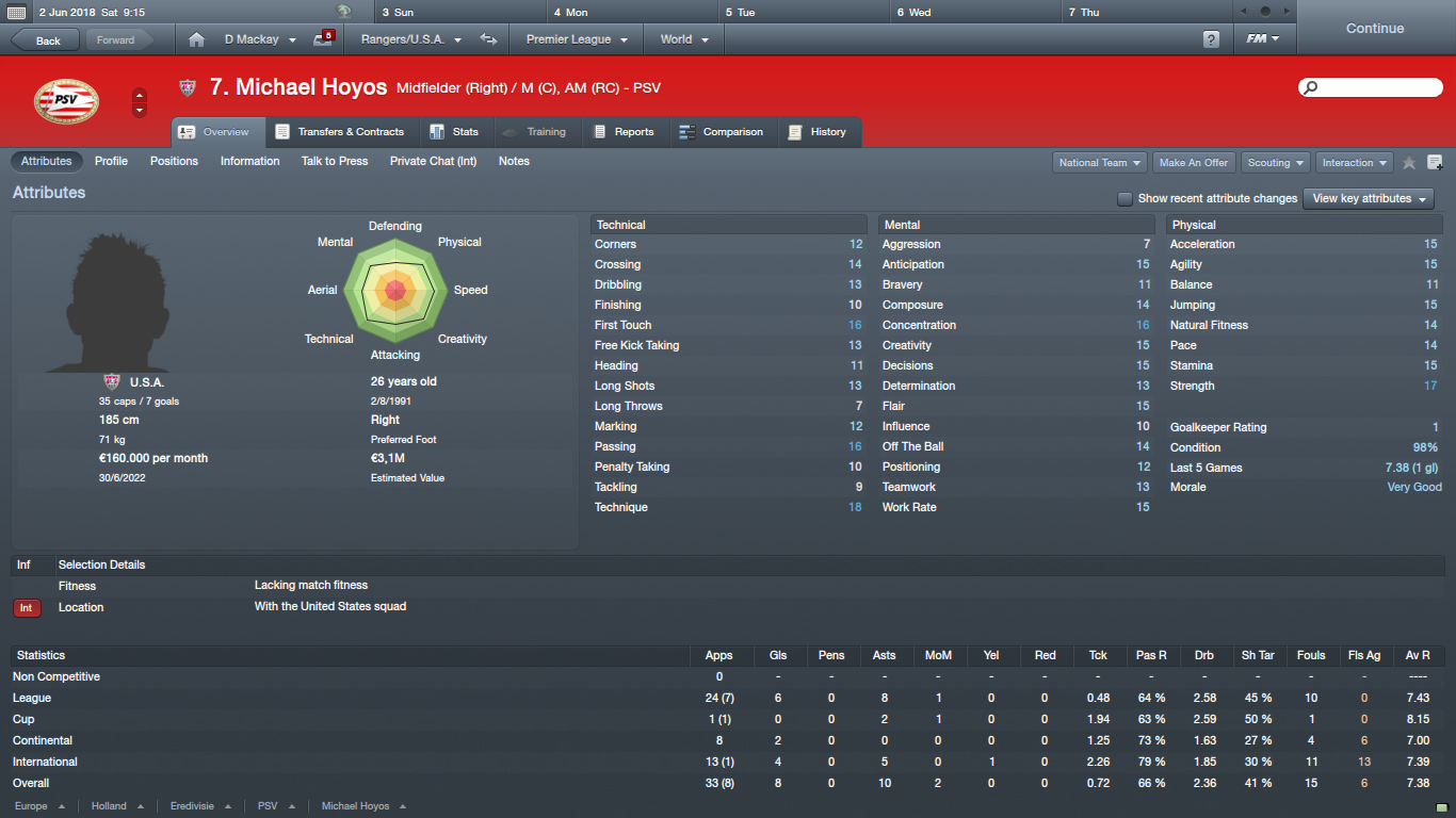 Pegou um grupo até tranquilo na Copa Do Mundo, a briga mesmo, teoricamente, é entre os EUA e Ucrânia pelo segundo lugar, mas acho que dá pra passar da fase de grupos. Rangers sinistro, parece que pegou o time numa draga danada, mas isso só aumenta as chances de ser reconhecido pelo clube se fizer um bom trabalho.
