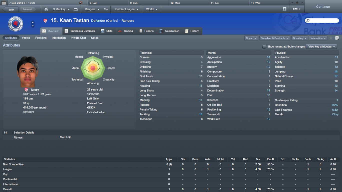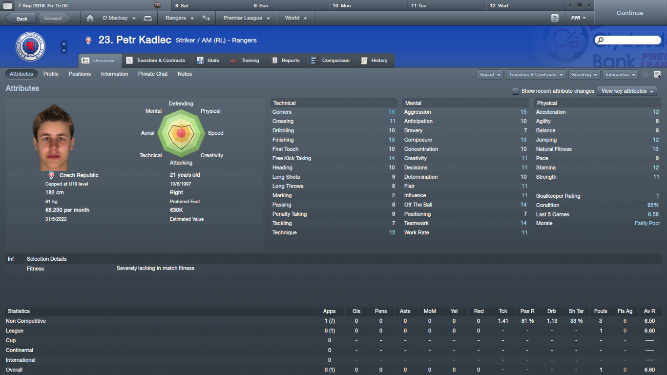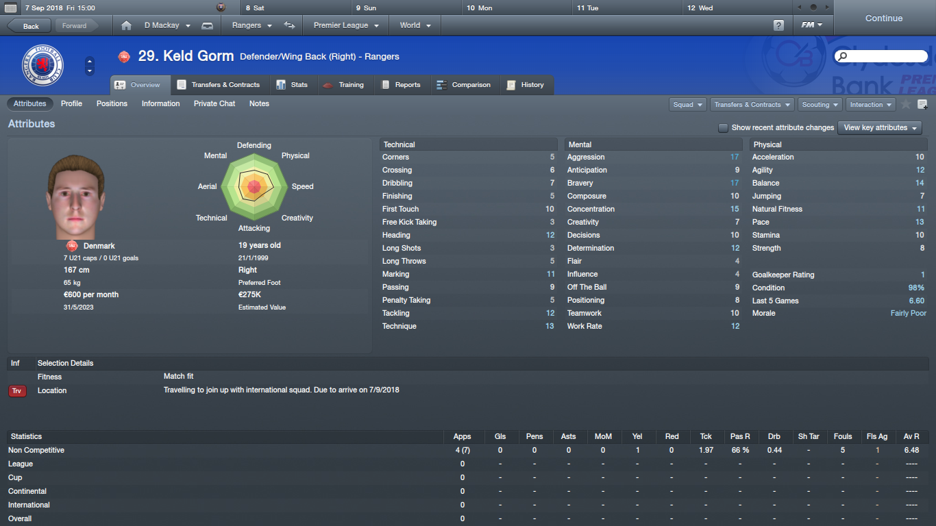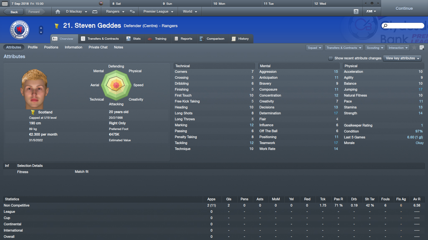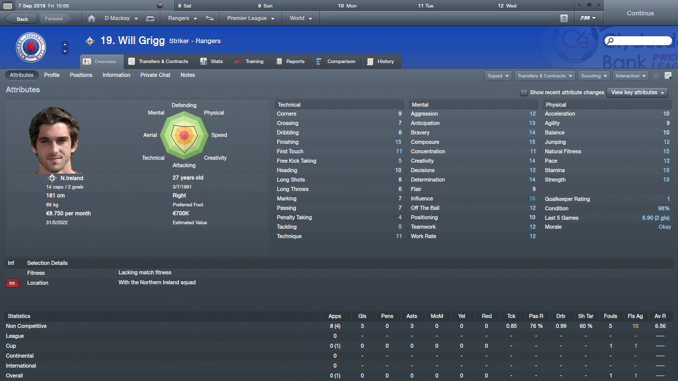 Como poderam notar, minha pré-temporada foi voltada ao lucro e não aos resultados ou ao preparamento correto da equipe, acho que tinhamos que fazer caixa, pois já tinhamos vendido as principais estrelas da equipe, dispensando ou emprestado os maiores salários e a situação financeira continuava ruim, então outras medidas tinham que ser tomadas. Ao final da pré-temporada, já tinhamos saido do vermelho, espero que isso seja o suficiente para manter o clube mais seguro financeiramente durante a temporada. Quanto a mim, especularam meu nome no AZ da Holanda, prontamente neguei qualquer especulação e será assim, até eu ser bicampeão da Champions League com o Rangers ou eles me demitirem, o que vier primeiro.