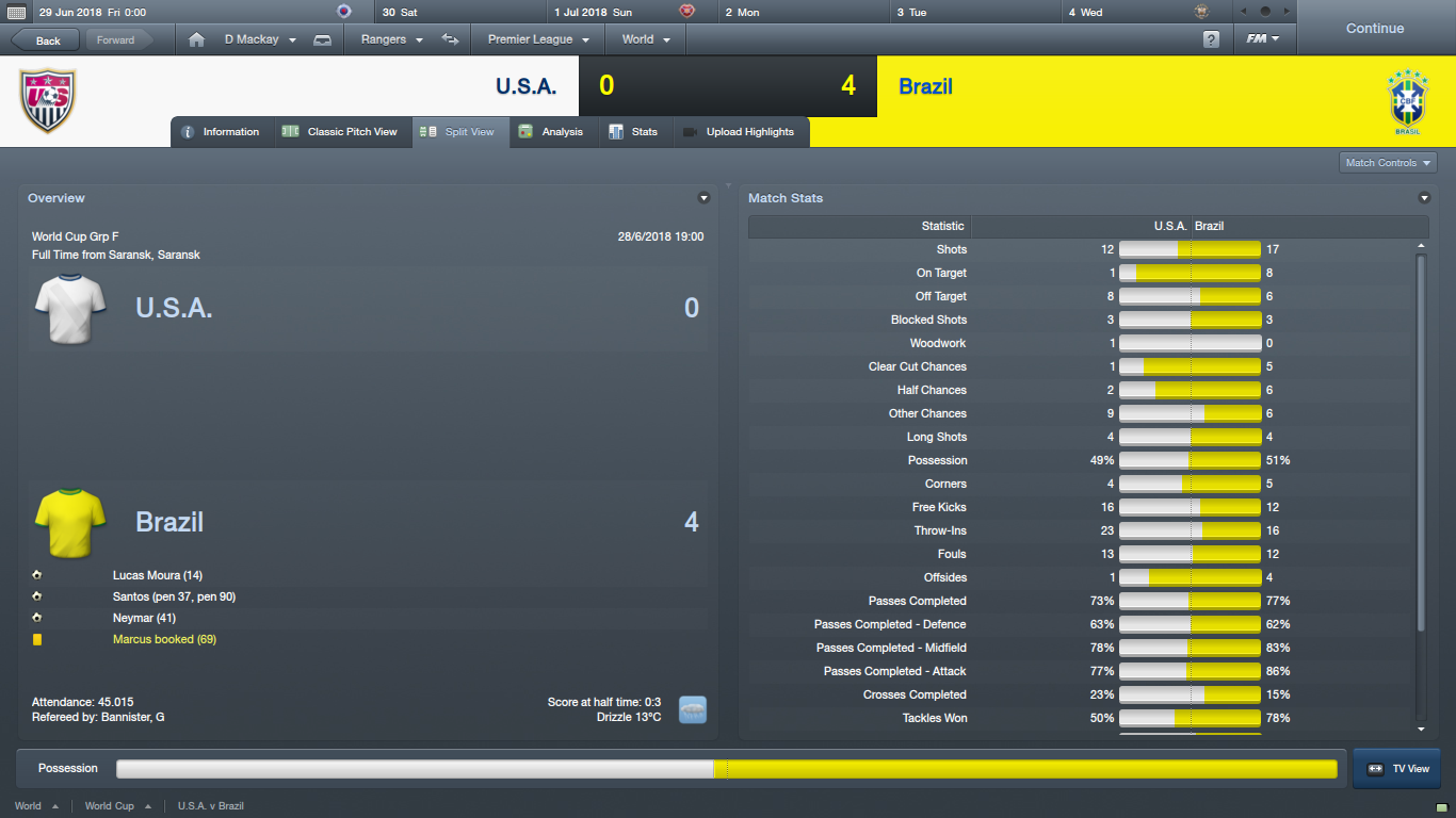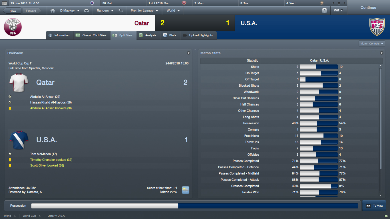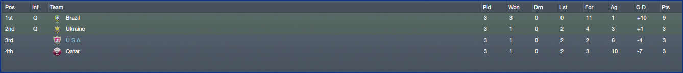 Começou bem, tinha tudo pra classificar dpeois de vencer os europeus, mas pro qatar foi foda, mesmo sendo os estados unidos, mas fazer o que, agora é concentrar no Rangers