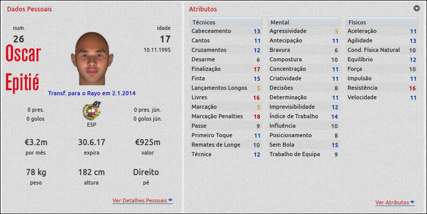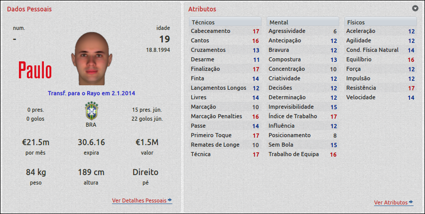 Jirimias Postado 21 de Novembro 2011 Autor Denunciar Postado 21 de Novembro 2011 VLADE:Tá tudo se acertando, Mazuch caiu como uma luva e o Tardelli forma uma dupla fatal com Fierro, agor aé seguir forte. xPalito:O time se acertou de imediato eTardelli engrenou rapidinho, pena que o Fierro tá tímido, mas este problema pode ser resolvido à medida que jogarem mais. renato.:haha aí exigir muito do moleque, mas isso é verdade, nisso o Fierro é bem parecido como Neymar, destaca quem joga ao lado dele Maiiron:haha é verdade, eu não tinha pensado nesta colaboração do Fierro, vc e o renato que comentaram isso e faz sentido, ele realmente consagra quem joga com ele.Só que desta vez tô sentido falta daquele Fierro do ano passado,estou esperando um sinal dele pra achar onde posso melhorar.Agora a zaga ficou forte,né?E não são tão velhos, podem jogar dois ou três anos juntos.E sem contar que já começo a aumentar a cota de espanhóis, já pensando em uma etapa futura. Henrique M.:Foi um resultado e tanto, nos coloca em uma posição bacana nesta fase.O Ewin é excelente, com a melhoria das estruturas para a base, acho que vai ajudar.O Marchena tá ajudando ele, quem sabe passar um pouco de influência para que ele seja o líder no time no futuro. Saggio:Meus olheiros trabalham muito, já são lá mais de 800 relatórios em três temporadas ( vou zerar no fim do ano), e vez em quando aparece um jogador como este.Achei um outro,um atacante espanhol que acho que vai destruir no futuro. Galera, vou postar terça, estou com febre,com garganta doendo, tá difícil de ficar na frente do pc.Devo postar até o fim do ano pra não ficar nada para trás.Até lá! Citar