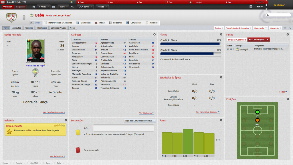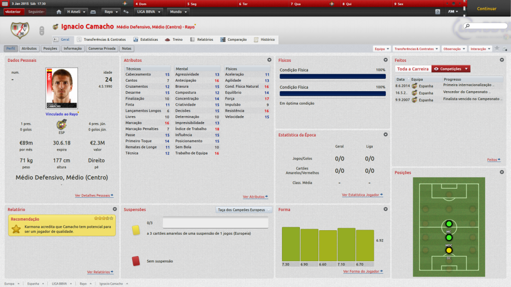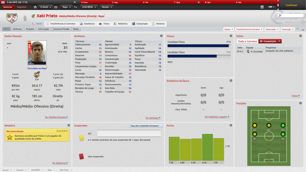 Jirimias Postado 12 de Dezembro 2011 Autor Denunciar Postado 12 de Dezembro 2011 Maiiron:Analisou bem.Agora é a parte mais complicada da UCL, o Liverpool será parada dura, espero contar com o time completo nestes jogos decisivos.Sobre os jogadores, o Baba não joga Janeiro inteiro, tá jogando pela Seleção e ainda não vi se ele é bom realmente.Já o Camacho é namoro antigo do Rayo, aproveitei a queda do time dele e a verba aparecer, mas ao meu ver, o melhor reforço é o Xabi Prieto, muito bom!Fierro tem que acordar, as lesões atrapalharam demais. Augusto.Zimmer:Não dá pra bobear mesmo, a turma tá logo ali de olho na liderança.Não tinha muita saída no sorteio UCL, aliás já não dá pra escolher adversário, espero conseguir chegar nas Quartas. renato.:Por enquanto tá tudo dentro do esperado, até um pouquinho a mais, espera alguma complicação na UCL.Sobre o Baba, nunca tinha visto ele no FM, parece ser um bom jogador. HenriqueBaa:Obrigado!Eu não sabia rs.Eu uso notas mesmo, todo post é feito dentro do jogo para não perder tempo. DanielGrandis:Desfalques sempre atrapalham, e nesta hora tem que ter um grupo forte, é isso que estou tentando com estes reforços.Quero ver este Baba, são boas recomendações. Ne0 :O Prieto é muito bom, fiquei temeroso pela idade, mas acho que joga duas temporadas em alto nível.O Paulo enfim jogou tudo oq ue sabe, só estou poupando um pouco ele, mas minha intenção é ter ele e Fierro no futuro próximo como titulares. Vltx_ :Ainda tá faltando aquele "up", a equipe ainda tem muita dificuldades de bater Real e Barcelona, e tem problemas com o Valencia, acho que é algo que realmente se acerta com o tempo.Felizmente, os confrontos diretos não tem atrapalhado muito.Espero chegar nas Quartas de Final na UCL, seria muito bom para as receitas do clube.Vlw! Citar