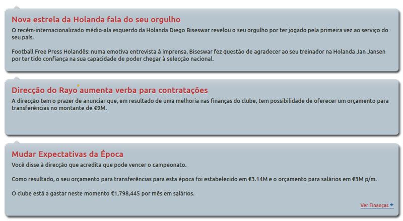 Jirimias Postado 11 de Dezembro 2011 Autor Denunciar Postado 11 de Dezembro 2011 Rayo lá no Japão. Novembro e Dezembro. O Rayo deu adeus ao 100% de aproveitamento contra o Sevilla.O time saio na frente com Tardelli, mas acabou cedendo o empate ainda no primeiro tempo.Com a expulsão de Mazuch, o Sevilla cresceu no jogo e esteve perdo de virar o placar, o que não aconteceu graças a Stegen, sempre muito seguro.Com o empate, o Rayo viu o Real Madrid se aproximar, quatro pontos separavam os rivais.Novembro marcou também a entrada de €9M para aquisição de reforços, uma bela surpresa para Ameli que não esperava poder reforçar o time no meio do ano, muito menos com esta generosa quantia.No jogo seguinte, o Rayo visitou o Manchester e protoganizou uma de suas piores partidas nos últimos dois anos.Não foi dia de Stegen que falhou em dois gols, aquele dia foi de Hulk,Rooney e Cavani, o Trio Fantástico de Manchester.A goleada não custou a segunda posição do time, mas pressionou o Rayo a vencer os dois jogos restantes para evitar qualquer surpresa. Há três jogos sem vencer, o Rayo recebeu o Espanyol e venceu apertado:2-1.O nome do jogo foi Manu del Moral, autor dos dois gols, em sua melhor atuação desde que chegou ao clube.Na partida seguinte, os reservas do Rayo voltaram a campo contra o Ponferradina, com a missão de apagar a má impressão do primeiro jogo e conseguiram.Vitória do Rayo por 3-0 e classificação garantida para as Oitavas de Final contra o Valladolid.Foi neste período que o clube anunciou a parceria com o Okayama, do Japão, em troca da abertura do mercado para os produtos do Rayo.Também foi neste mês que a diretoria do Rayo anunciou o final da novela com Cândido Domingues, mesmo com o aceite do Barcelona, detentor do passe do jogador, o jovem recusou assinar com o Rayo, e deixará o clube assim que seu empréstimo terminar.De volta aos gramados, o Rayo perdeu sua primeira partida na Liga.Sem Stegen e Weiss, lesionados nos jogos de suas seleções, engrossando assim a lista dos desfalques, o Rayo Vallecano foi presa fácil para o Valencia. Luciani mais uma vez foi o camisa 1 do Rayo, só que contra o Salzburg o jovem goleiro teve pouquíssimo trabalho,a o contrário do arqueiro adversário que viu sua rede balançar três vezes.Com a vitória, o Rayo garantiu a classificação para fase seguinte da competição, independentemente do resultado da última rodada.De volta à BBVA, o Rayo passou como um rolo compressor sobre o Real Sociedad comandado por um inspiradíssimo Paulo, que pela primeira vez ao lado de Tardelli, fez quatro gols na goleada por 5-0.Naquele dia a torcida sentiu menos saudade de Fierro.Com esta atuação, Paulo deu alguns passos a frente na preferência de Ameli, uma concorrência injusta para Epitié, que ficaria afastado por três meses dos gramados. Dezembro iniciou com o primeiro confronto do ano entre Real Madrid e Rayo.Jogando em casa, o Rayo não fez um mau jogo, mas peças importantes que desequilibravam a favor, tiveram um mau dia e colocaram tudo a perder.Marcano falhou dos dois gols do Real, no segundo entregou a bola no pé do adversário.Gibson, um dos melhores jogadores do Rayito nesta temporada, jogou bem até bater o pênalti que empataria o jogo se não fosse pela magnífica defesa de Casillas.Este foi aquele típico pênalti que o goleiro leva os méritos da cobrança.Fim de jogo, e o Rayo caiu para terceiro, mas com um jogo a menos poderia retornar à liderança.Foi o que aconteceu na rodada seguinte diante do Almeria.Fora de casa, os comandados de Ameli foram bem superiores e com 2-0 levaram os pontos da partida e assumiram a liderança da BBVA.No último confronto da Fase de Grupos o Rayo, com apenas alguns titulares no banco de reservas, foi até á Escócia e trouxe três pontos na mala.O jogo contra o Rangers foi equilibrado, mas prevaleceu a força ofensiva do Rayo. Rayo e Zaragoza eram rivais, mas uma rivalidade bem inferior daquela que que o clube tinha com o Real Madrid.Ambos treinadores eram muito amigos, e as coletivas que antecipavam o jogo eram repletas de elogios e de expectativa pelo jogo.Dentro de campo, Ameli levou a melhor com uma partida impecável de sua equipe, principalmente no segundo tempo.Com a suspensão de Tardelli, Keirrison e Paulo formaram a dupla de ataque e fizeram um gol cada na goleada por 5-2.No jogo seguinte, o Rayo recebeu o Barcelona e perdeu sua terceira partida na Liga.Ameli lamentou o fato do time ter sofrido dois gols seguidos, quando a equipe vencia por 1-0.Para esquecer a derrota, o Girona caia como uma luva para despedir de 2014.Antes do jogo contra o Girona, as atenções no Rayo se voltaram para o sorteio da fase seguinte da UCL, onde não se pode escolher adversários.O próximo adversário do Rayito seria o Liverpool. No último jogo do ano, nada de surpresas, goleada do Rayo por 3-0 sobre o Girona, que valeu o título simbólico do primeiro turno para o time de Ameli.O ano de 2015 coemçava mais cedo para Ameli que buscava reforçar o time e negociar os jogadores qu não seriam aproveitados no restante da temporada.Com Ngoyi negociado com o Leeds, e a decepção com Vitolo, Ignacio Camacho, jogador do Valladolid foi contratado para ser o cão de guarda.Camacho tem passagens recentes pela Seleção da Espanha, e será um concorrente de Darron Gibson, um dos melhores jogadores do time até agora.O ataque ganhou Baba, senegalês que jogava no Celtic, e que passaria compor o ataque que iniciaria o ano sem Epitié e Fierro.O meio-campo ganhou também um reforço, Xabi Prieto, ex-Sociedad, que seria opção para a meia-direita ocupada pelo titularíssimo Weiss. Notícias 1 | Notícias 2 Citar