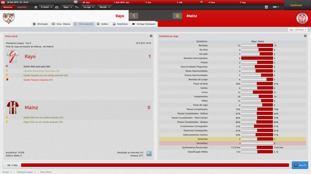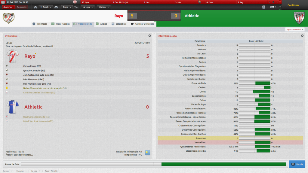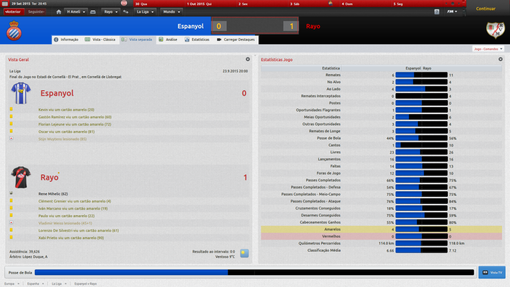 Jirimias Postado 24 de Dezembro 2011 Autor Denunciar Postado 24 de Dezembro 2011 Não. Opções tem o bastante na posição, e ele ainda iria receber um alto salário. Obrigado,Johann!! De fato, não faltam opções para o ataque, mas acabei optando por trazê-lo, comecei a ter algumas lesões no setor. SETEMBRO/2015 Rayo segue sem vencer Real, mas comemora empate no Bernabéu. Rayo vira para cima do PSV e goleia na estreia da UCL. Rayo abre 2-0, mas Barcelona vira e isola na liderança. Mihelic brilha e faz gol da vitória contra o Espanyol Rayo passeia contra o Bilbao! Com time misto, Rayo sofre para vencer o Mainz. Villa é anunciado.Ex-Barcelona chega em 2016. UCL:Rayo e Porto empatado em pontos. BBVA: Rayo tem o pior início de Ligas nos últimos anos. Citar