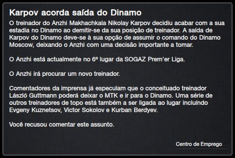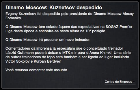 Bruno Trink Postado 25 de Fevereiro 2012 Denunciar Postado 25 de Fevereiro 2012 E deu mesmo Manchester United na final do Mundial Interclubes. Os diabos vermelhos derrotaram o Independiente na final por 1 a 0, gol do garoto Oliver Platt, e chega com moral para a disputa das oitavas de final da Champions League contra o MTK. A inter-temporada foi de trabalho, propostas e muita ansiedade. Faltando 10 dias para o jogo mais importante da minha carreira, estou tendo que administrar as inúmeras ofertas que temos recebido para contratar nossos jogadores e tentar manter o foco deles na preparação para esse confronto contra o Manchester United pelas oitavas de final da UEFA Champions League. Até para mim teve proposta. A presidente do Lokomotiv Moscow contactou meu empresário e me propôs um contrato de quatro anos com o time das ferrovias russas. O timing não podia ser pior, hoje só penso no MTK, mas foi bom saber que meu trabalho tem sido realmente reconhecido fora da Hungria e que não são apenas especulações. Já estou me preparando psicologicamente para me despedir do MTK, essas podem ser minhas últimas partidas no comando do clube. Além disso, passei o inverno inteiro recusando propostas pelos nossos jogadores. Não bastasse a saída do Fernando, tive que evitar que, principalmente, Essuman, Konaté, Vavra, Szekeres e outros fossem pelo mesmo caminho. Para suprir a saída do nosso zagueiro titular, contratei uma jóia vinda do Osasuna, a promessa Alberto Murillo. Ainda não sei se ele já chega como titular ou se simplesmente "promovo" o Remache, que esteve bem sempre que jogou no time B. Nessa procura por um zagueiro, acabei encontrando outro brasileiro, coincidentemente também chamado Fernando. Esse até joga de zagueiro, mas pretendo aproveitá-lo no meio de campo. O ganês Owosu Ofori já estava contratado há muito tempo, mas só chegou ao clube agora que completou 18 anos. Alberto Murillo | Fernando | Owusu Ofori Viajamos para a Suíça e para a Suécia para fazer alguns amistosos e recuperar o ritmo de jogo. Gostei do rendimento do time, mesmo com os desfalques dos jogadores que estavam na Copa Africana de Nações. Empatamos com o bom time do Basel e vencemos os três suecos com certa tranquilidade. Espero que essa preparação seja suficiente e que consigamos manter o mesmo ritmo com que terminamos o ano. FC Basel | Kalmar FF | Helsingborgs IF | Halmstads BK Kitumba, Yao, Tshabalala e Diallo desfalcaram o grupo em praticamente todo o período de treinamento. Como suas seleções foram até as fases finais da Copa Africana de Nações, eles só voltam à Hungria na antevéspera da partida contra o Manchester United, junto com outros que também foram convocados para amistosos agora nessa semana. Convocações assim valorizam nossos jogadores, é verdade, mas administrar essa ausência por muitas vezes pode ser complicado. Além disso, ainda tentamos reduzir o elenco que consideramos um pouquinho inchado. Procuramos emprestar alguns garotos como o Konaté e a dupla de zagueiros argelinos, mas eles recusaram todas as propostas feitas por eles, até de clubes com mais reputação que o MTK. Que não venham reclamar depois...
