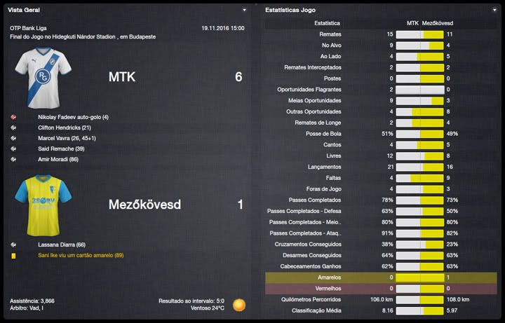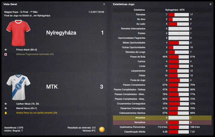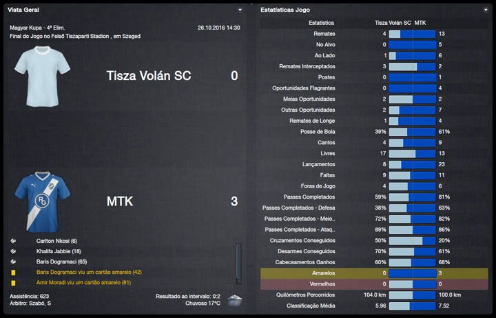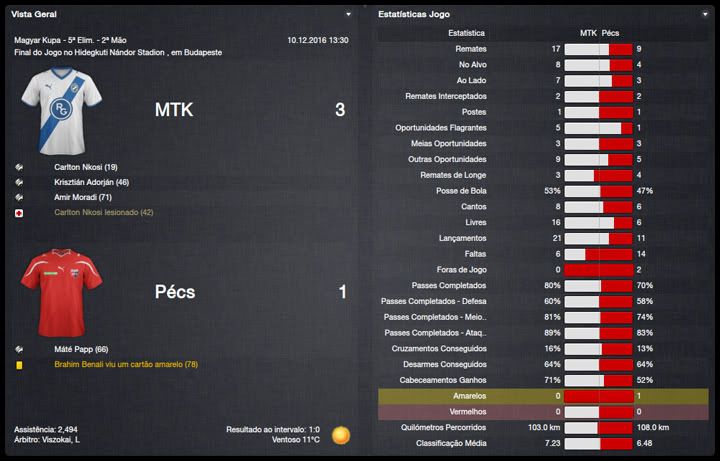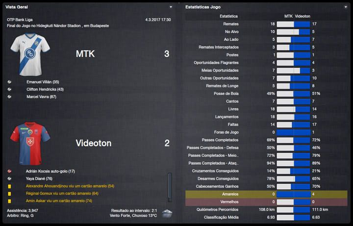 Bruno Trink Postado 27 de Fevereiro 2012 Denunciar Postado 27 de Fevereiro 2012 Senegal conquistou a Copa Africana de Nações de 2017 ao vencer na final a seleção de Gana por 2 a 1, gols de Ibrahima Niassé. Na decisão de 3º lugar, a Costa do Marfim, de Yao, bateu os então campeões Camarões, de Kitumba, por 2 a 0. Talvez não tenha sido soberba, não sei. Só sei que usei o fato do Villas Boas poupar meio time no jogo de volta no Old Trafford na preleção e funcionou. O time entrou com uma vontade além do normal, fez 1 a 0 e o United sentiu falta dos seus veteranos para correr atrás da virada. Ultrapassamos todas as expectativas que existiam sobre nosso time e eliminamos o melhor time do mundo, que tinha conquistado três das últimas quatro Champions League. Espero que continuem nos olhando como pequenos e que continuemos surpreendendo. Manchester Unted | Nyíregyháza Spartacus FC | Paksi SE | Nyíregyháza Spartacus FC | Videoton FC | Manchester United Não tinha motivos para mudar a forma da equipe atuar. Enfrentaríamos os red devils da mesma forma que enfrentamos Chelsea, Inter e Stuttgart. Já havíamos chegado até ali assim e seria assim que tentaríamos continuar avançando. Começamos a partida em cima, criamos boas oportunidades até o gol de Yao, aos 19 minutos. Os ingleses sentiram e começaram a apelar para uma certa violência, bem coibida pelo árbitro Felix Brych. Tanto que o brasileiro Rafael recebeu o segundo amarelo ainda no primeiro tempo e ficamos com um jogador a mais. Mas voltamos desatentos do intervalo e o lendário Wayne Rooney aproveitou um vacilo da nossa defesa para empatar. Mesmo com superioridade numérica, não conseguimos converter as chances que criamos em gols e a partida terminou mesmo empatada. Pelo que foi o jogo, não foi um bom resultado. Um 0 a 0 em casa classificava o United e tínhamos que atacá-los em Manchester. Quando soube que, além do Rafael, suspenso, e do Rooney, contundido, o treinador deles nem levou para o jogo Eden Hazard, Chicharito Hernández, Criscito e Badelj, eu fiz questão de passar isso para os meus jogadores no vestiário. Mostrei para eles que estavam nos menosprezando, acreditando que podiam nos vencer quando e como quisessem. A pilha foi imediata: com quatro minutos, Yao, decisivo como sempre, fez 1 a 0. Então, acho que pesou a falta de experiência. Nós temos um time jovem também, mas nossos garotos já se acostumaram a ser titulares e decidir. Seguramos bem o ímpeto vermelho, na bola, sem apelar para faltas, como eles fizeram. Bem posicionados, mantivemos a vantagem até o final e eliminamos o grande favorito. Nosso próximo adversário ainda está indefinido, acabamos de abrir a rodada de volta das oitavas, mas já não tememos mais ninguém. Enquanto esperamos a definição, continuamos no bom caminho da hegemonia húngara. O Debrecen e o Videoton continuam na nossa perseguição mas, faltando dez rodadas, acho que esses sete pontos de vantagem já são suficientes para nos assegurar uma certa tranquilidade. Nas duas Copas, iniciamos a disputa das quartas de finais, ambas contra o Nyíregyháza, e já abrimos uma boa frente nos dois jogos de ida. Nossos três reforços já estrearam, em condições diferentes. O garoto Ofori ainda está muito cru, mas teve alguns minutos no time B. Fernando e Murillo começaram como titulares contra o United. Enquanto o brasileiro mostrou personalidade, o zagueiro espanhol sentiu um pouco e acabou perdendo a briga para o Remache. O professor optou por deixá-lo se adaptar ao país jogando entre os reservas mesmo. A notícia ruim é que perdemos, ao mesmo tempo, nossos dois meias que jogam pela esquerda. Tanto o Tamuzo quanto o Hendricks, seu reserva imediato, devem ficar no departamento médico algumas semanas, mas acredito que tenhamos tempo suficiente para prepará-los para as quartas de final da Champions League.