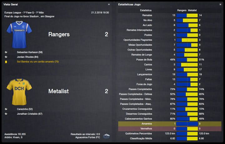 Bruno Trink Postado 16 de Março 2012 Denunciar Postado 16 de Março 2012 A temporada foi reiniciada e, por mais que meu maior objetivo nesse meu ano de estreia no Metalist seja dar ao clube o seu primeiro título ucraniano, nesse momento a "chave" foi mudada para a Europa League. Até porque já começamos com uma viagem para Glasgow, uma partida dura contra o Rangers e, uma semana depois, o jogo de volta. Com a classificação para as oitavas de final, as partidas pela Liga ficaram um pouco em segundo plano e jogamos com um time misto contra o Metalurg Donetsk e outro completamente reserva contra o Tavria. A aposta valeu: vencemos as duas e, de quebra, estamos entre os oito finalistas da competição continental. A tendência é que, agora que esse título está mais palpável, passemos a priorizá-lo mas, claro, sem perder de vista que o Shakhtar quer muito nos ultrapassar na Liga. Rangers | Rangers | Metalurg Donetsk | Sporting Clube de Portugal - SAD | Tavria Simferopol | Sporting Clube de Portugal - SAD Temia voltar de um período longo de inatividade, com apenas dois amistosos, e ter logo uma decisão pela frente. Mas o time estava bem arrumadinho e não se assustou com o Ibrox Stadium praticamente lotado. Voltei com a ideia de deixar o já negociado Samba no banco e voltar com a dupla Adeleye - Carazinho. Jogo equilibrado e sem gols no primeiro tempo. O oposto dos quarenta e cinco minutos finais. Carazinho fez 1 a 0 de cabeça, Karlsson empatou mas Cristaldo nos colocou na frente novamente. Pena que nos minutos finais eles conseguiram a igualdade novamente, mas os dois gols marcados fora de casa nos deixavam com uma boa vantagem. Mas a vantagem do nosso estádio era maior, dominamos completamente a segunda partida e nem o 2 a 1 depois do gol deles me preocupou. Do jeito que o time estava, não perderíamos essa vaga. O adversário seria o Sporting, que não teve a facilidade esperada para passar pelo Sparta Praga. Ao contrário da fase anterior, fizemos a primeira partida em Kharkiv. Ganhamos por 2 a 0, dois gols do Cristaldo, mas eu comecei a temer pela "previsão" que fiz há uns meses: acertamos quatro vezes a trave lusa. Como decidiríamos no José Alvalade, esses gols perdidos poderiam fazer falta. Mas nada, jogamos novamente bem e o inspirado da vez foi o outro atacante. Gustavo marcou duas vezes e desperdiçou o hattrick ao perder um pênalti quando a fatura já estava bem encaminhada. Estamos entre os oito e não podemos reclamar da sorte. Caímos, teoricamente, do lado mais fácil da chave, com CSKA Moscow, nosso próximo oponente, e Genoa e Nacional da Madeira. Mas já vivi isso de "lado fácil" uma vez, no MTK, e não fomos para a frente. Vamos passo a passo, um jogo por vez, e, então, comemoraremos alguma coisa. Apenas duas rodadas pela Premyer Liha e nós continuamos na briga particular com o Shakhtar pelo título. Vencemos as duas partidas, eles também e a nossa vantagem continua de quatro pontos. Fato é que nossa campanha é tão boa que já asseguramos vaga na próxima Europa League mesmo ainda faltando nove jogos para o fim do campeonato. Temos pela frente, antes do confronto com o CSKA Moscow, três partidas razoavelmente tranquilas, mas não podemos vacilar para não permitir a aproximação dos mineiros. A posição de volante tem sido uma dor de cabeça nesse reinício de temporada. Não sei se o problema é do esquema de treinamentos específicos que temos para cada posição ou se é apenas azar, já que as contusões tem sido durante as partidas, mas tanto o Kasjanov quanto o David andaram frequentando o departamento médico. O russo, por sinal, não deve voltar mais nessa temporada e estou tendo que improvisar o Andriy Reva em algumas situações. Pelo lado positivo, os reforços entraram muito bem no time. Gustavo já marcou quatro gols nos cinco jogos que fez, enquanto o Gilmar Germano fez um e deu quatro assistências. Ambos deram um "empurrão" de qualidade ao elenco e nos colocaram ainda mais favorito aos títulos que estamos disputando.
