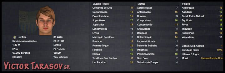 Bruno Trink Postado 24 de Março 2012 Denunciar Postado 24 de Março 2012 O principal motivo para que eu continuasse mais um ano no Metalist não foi nem o contrato, mas sim o fato de voltar a disputar uma Champions League. Ao contrário da minha primeira vez, no MTK, quando fomos franco atiradores e surpreendemos ao eliminar o Manchester United, dessa vez eu acredito que meu time tenha condições reais de lutar pelo título, apesar da falta de "camisa". O título indiscutível da Europa League apenas reforçou esse meu pensamento. Só que UCL é outro nível e, até para lutar contra essa falta de história internacional do Metalist, ainda precisávamos reforçar nosso elenco. E, dessa vez, eu não economizei. Juntei o que "sobrou" da temporada passada com o que a diretoria disponibilizou agora e mais o que conseguimos com as saídas do Adeleye, do Hauche e do Montillo e trouxemos doze reforços. Já estava bem satisfeito com nosso quarteto ofensivo, Ramadan, Germano, Gustavo e Cristaldo, e também com as opções que tínhamos para substitui-los. O foco das contratações, então, foi para o sistema defensivo. Temos agora uma nova dupla de zaga, formada pelo francês Tran e o camaronês Ousmane, que teve, inclusive, uma passagem de três anos no nosso rival Dnipro. Trouxe também, para compor elenco, alguns ex-jogadores meus da época do MTK, como o Dia e o Tamuzo. Para fechar o grupo, estou apenas negociando com um atacante, por empréstimo, para a vaga deixada pelo Nkosi que, finalmente, viu sua vontade de sair do clube realizada. Vitaliy Kucherenko | Igor Mandryk | Ruslan Kavatsiv | Mohamed Tran | Reagan Mamba | Kevin Brennan Louis Fumu Tamuzo | Daouda Dia | Stanislas Ousmane | Victor Tarasov | Hacene Aït-El-Hocine | Artem Zozulya O trabalho na pré-temporada foi um pouco prejudicado pelas obras de ampliação do centro de treinamento, mas conseguimos aproveitar bem dentro das possibilidades. Como eu prefiro fazer os amistosos com o máximo do elenco completo, fizemos apenas três jogos, um deles obrigatório com o Lviv. Fiz questão de escolher um adversário do nível do Lyon, atual vice-campeão europeu, para ter uma noção melhor de como estávamos para a competição que será a mais importante para nós. Empatamos por 1 a 1 numa partida em que poderíamos tranquilamente ter saído com a vitória. Olympique Lyonnais | FC Lviv | Astra Ploiesti (2009) Aproveito o espaço aqui para me apresentar: sou Iliya Gruev, ex-jogador de futebol búlgaro. Passei por vários clubes no meu país e ainda joguei na Turquia e na Alemanha. Depois de encerrar a carreira nos campos, passei a trabalhar como assistente técnico no Chernomorets Burgas e estava, desde 2011, no Hajduk Split e na seleção búlgara. Aceitei prontamente o convite do professor Guttmann para substituir o antigo auxiliar e espero dar minha contribuição para que o Metalist conquiste a Champions League. Junto comigo ainda vieram o alemão Stephan Otte para treinar a parte física e o mito nigeriano Vincent Enyeama para treinar nossos goleiros. Nesse pouco mais de um mês que estou no clube, pude conhecer o elenco e acredito que temos um grupo bastante equilibrado e coeso. A saída do Samba e do Adeleye havia enfraquecido um pouco a defesa, mas já repusemos mais do que a altura com Tran, Ousmane e Kavatsiv. Ficamos com um grupo bem jovem e a experiência e os gols do Cristaldo serão fundamentais para liderar esse time promissor.