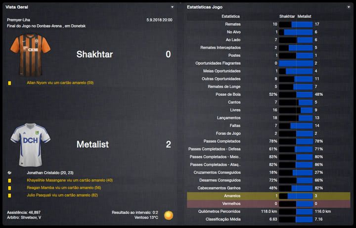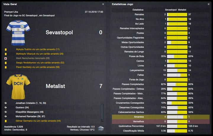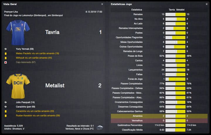 Bruno Trink Postado 30 de Março 2012 Denunciar Postado 30 de Março 2012 No Brasil, a hegemonia no campeonato nacional é paulista. Depois dos títulos de Flamengo em 2009 e Fluminense em 2010, o Santos foi o campeão em 2012 e depois Corinthians e São Paulo dividiram conquistas. O Timão venceu em 2014, 2016 e 2017, enquanto o Tricolor Paulista conquistou 2012, 2013, 2015 e 2018. Tivemos nesse final de ano nossas duas primeiras derrotas no ano, uma pela Champions League e outra na Liga. A primeira era esperada, não foi nenhuma surpresa. Já a segunda foi um tropeço que não pretendia ter sofrido, mas acontece. De qualquer forma, continuamos muito bem, classificados para o mata-mata da UEFA Champions League e muito tranquilos na Premyer Liha. Mas o mais importante foi que mostramos que não somos dependentes dos gols do Cristaldo, fora dois meses com um estiramento no ligamento do joelho. Fez muita falta, claro, mas conseguimos manter um bom nível. Temos agora uma parada de dois meses e vamos nos preparar especificamente para os dois confrontos contra o Napoli e para a sequencia da temporada. PFC Sevastopol | PFC Sevastopol | Arsenal Kiev | FC Bayern München | Metalurg Donetsk SC Volyn Lutsk | RSC Anderlecht | Tavria Simferopol | F.C. Barcelona | Metalurg Zaporizhzhya A liderança do grupo da Champions com 100% de aproveitamento era excelente, mas não garantia nada. Num grupo com um "saco de pancadas" como estava se mostrando o Anderlecht, se perdêssemos fora de casa para o Barcelona e para o Bayern, corríamos o risco de cair para o terceiro lugar e, consequentemente, ser eliminado da competição. Em Munique, o Bayern começou melhor e abriu o placar aos 27 minutos. Aos poucos equilibramos a partida e poderíamos ter empatado nove minutos depois, mas Germano cobrou um pênalti para fora da Allianz-Arena. Na segunda etapa, tentamos, pressionamos, tivemos chances, mas a trave nos negou o empate por duas vezes. Na penúltima rodada, fizemos o esperado e, num jogo em que tivemos impressionantes quarenta finalizações, acabamos goleando por 4 a 0. Confesso que o Gruev ficava sempre me atualizando a respeito do que acontecia entre Bayern e Barcelona. Os catalães fizeram 1 a 0, mas os bávaros viraram para 2 a 1 ainda no primeiro tempo. Com esse resultado, a definição ficaria toda para a última rodada e teríamos, pelo menos, que empatar no Camp Nou. Mas, faltando dez minutos para o fim, Messi fez 2 a 2 e definiu o grupo. A rodada final serviria apenas para decidir o primeiro lugar do grupo. Importante mas, com o nível das equipes que temos na Champions League, vale basicamente para jogar a segunda partida em casa. O Barcelona foi claramente melhor nos primeiros 45 minutos e mereceu ir para o intervalo com aquele 1 a 0. A bronca nem foi tão grande no vestiário, mas mostrei pra eles que podiam, pelo menos, jogar melhor. Em dez minutos, viramos para 3 a 1. Brennan, num lindo chute cruzado, empatou. Tran, de cabeça, fez 2 a 1 e Hutta sacramentou a vitória. Hoje fomos ao sorteio para descobrir que nosso adversário será o Napoli. Não podemos mais escolher. É aceitar e partir para cima. Mesmo com a derrota para o Volyn, numa partida em que sentimos falta de mais atacantes no elenco e ficamos sem poder de reação com as duas expulsões no lance do pênalti, continuamos firmes e fortes na liderança da Premyer Liha. Já são nove pontos de vantagem sobre o Dnipro e a ordem parece que está se estabelecendo nas demais posições, com o Shakhtar em quarto e o Dinamo Kiev em sexto. Na Kubok Ukraini, passamos pelo Sevastopol e estamos nas quartas de final. A competição só volta em abril. Gelei quando o Cristaldo deixou o campo de maca na partida contra o Sevastopol. Depois de marcar três vezes, nosso artilheiro nem conseguia firmar o pé no solo e as suspeitas se confirmaram: um estiramento no ligamento do joelho o deixaria mais de dois meses no departamento médico. Já tínhamos o Simeone machucado e nos faltavam opções para formar o ataque com o Gustavo. Primeiro tentamos o Mandryk, mas o garoto, apesar de ir bem em alguns jogos contra times menores, mostrou que ainda está muito cru quando enfrentou o Bayern. Com o Hutta, formamos um ataque com características diferentes, mais rápido, mas foi o que funcionou melhor. Já sabíamos que estávamos precisando de mais jogadores para a posição e o professor deve ir no mercado para contratar, provavelmente por empréstimo. Por falar em mercado, depois de meses de negociação, fechamos a contratação do experiente meia Kevin-Prince Boateng, que deve ser inscrito para o restante da temporada.
