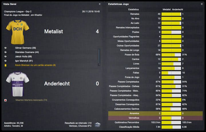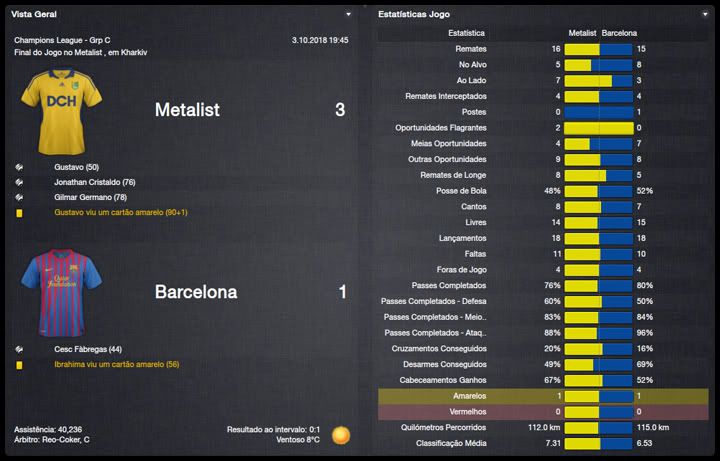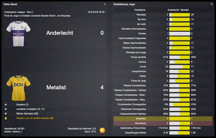 Bruno Trink Postado 28 de Março 2012 Denunciar Postado 28 de Março 2012 Estava na hora de descobrir se nosso time estava bem para brigar pela Champions League. Não sou de reclamar da sorte, acredito no trabalho, e esse difícil grupo em que caímos mostraria onde podemos chegar. Conquistando a classificação num grupo com Barcelona e Bayern Munique, provaríamos que temos condições de chegar até a final, salvo, claro, algum tropeço. Sendo assim, aproveitamos o fator casa, vencemos os dois e nos candidatamos ao título. Claro que ainda restam as três rodadas finais e temos que ratificar a classificação para o mata-mata, mas já mostramos que podemos. Shakhtar Donetsk | Vorskla Poltava | RSC Anderlecht | Dnipro Dnipropetrovsk | MFC Mykolaiv Karpaty Lviv | F.C. Barcelona | PFC Nyva Vinnytsya | Zirka Kirovograd | FC Bayern München Apesar de fora dos nossos domínios, a estreia não poderia ter sido melhor. Fomos até Bruxelas e, em 25 minutos, já tínhamos feito 3 a 0 e praticamente garantido a vitória. Cristaldo ainda ampliou no segundo tempo e voltamos para casa com três tranquilos pontos. Em seguida, recebemos o Barcelona que, depois da saída do Guardiola, não voltou a ser aquele time do início da década, mesmo com Messi, Alexis Sánchez, Petr Cech no gol, Fàbregas e o atacante francês Aldo Fedeli, mas continua sendo um time de topo. Jogo rigorosamente equilibrado, sem gols até o último minuto do primeiro tempo, quando Fàbregas acertou um belo chute de fora que matou o Neyzinho. Sofrer um gol naquela altura é péssimo, mas mostrei pros jogadores no intervalo que eles mostraram que tinham totais condições de virar o placar. Com cinco minutos, Gustavo empatou. Continuamos no nosso estilo de trocar chances, que eu sei que é perigoso mas é como eu sei fazer. Prefiro um 8 a 7 do que um seguro 1 a 0. Assim, Cristaldo virou aos 31 e Germano matou os catalães dois minutos depois. Tomamos a liderança isolada e partimos cheios de moral para enfrentar o Bayern. Sinisa Mihajlovic tem sob seu comando um time muito forte, jovens mesclados com remanescentes como Neuer, Alaba, Kroos, Badstuber e Thomas Müller. Com Gustavo suspenso e Simeone lesionado, o garoto Hutta foi o parceiro do Cristaldo no ataque e se saiu muito bem. Iniciamos a partida na pressão e fizemos dois gols logo em 22 minutos. Parecia se encaminhar para uma vitória tranquila mas os bávaros finalmente entraram na partida e equilibraram a posse da bola. Mesmo assim, continuamos tendo mais chances de ampliar só que o Brennan deu uma vacilada e cometeu pênalti, que Ziya Saglam marcou e diminuiu. Mas foi só isso que permitimos a eles. Voltamos a controlar a partida e, fora um ou outro lance, estivemos seguros até o final. Ainda não temos a classificação garantida, mesmo se vencermos em casa o "saco de pancadas" Anderlecht, mas, pelo que jogamos nessas duas partidas, não será surpresa se arrancarmos dois empates em Barcelona e Munique. Falei que não acreditava no Dnipro. Nossos rivais já estão perdendo fôlego e conseguimos abrir cinco pontos na liderança. O Shakhtar reagiu e já está em terceiro e o Dinamo Kiev saiu disparado daquela posição desconfortável. Temos o melhor ataque disparado da competição, a melhor defesa e, mesmo dando prioridade à Champions League, não nos vejo perdendo esse bicampeonato. Nosso time reserva é bem melhor que a maioria dos times da Premyer Liha e, mesmo com um ou outro tropeço, acredito que conquistaremos o título novamente. Estamos em falta de atacantes. Afinal, saíram o Hauche, o Nkosi e o Bouzgarrou e só chegou o Hutta. O Mandryk ainda não está pronto, era pra estar jogando no sub-21, mas teve que ser aproveitado em cima para poupar os titulares. Com as lesões do próprio Hutta e do Simeone, tivemos também que "desencostar" o Gegedosh, que, sem chances, estava até treinando em separado. Possivelmente precisaremos trazer um ou dois atacantes para compor elenco na janela de inverno. Nas demais posições, estamos bem servidos, com um elenco que não está inchado, mas tem opções para todo mundo. O trio defensivo formado por Tran, Ousmane e Mamba se entrosou muito rápido e os garotos estão evoluindo bastante com o plano de treinamento que traçamos no início do trabalho. Se não tivermos muitos problemas com contusões, prevejo um time voando baixo no início do ano que vem para a reta final da temporada.