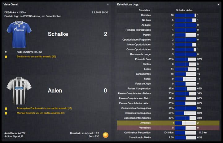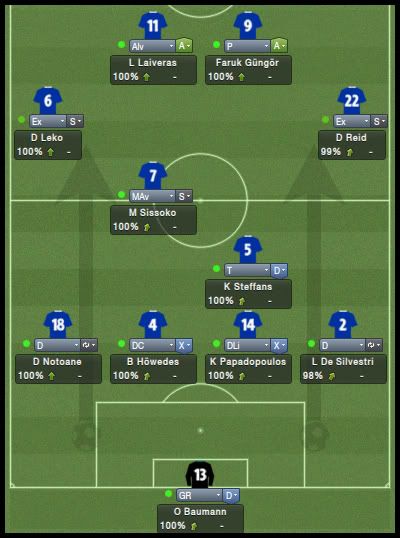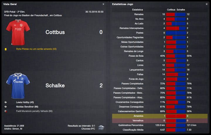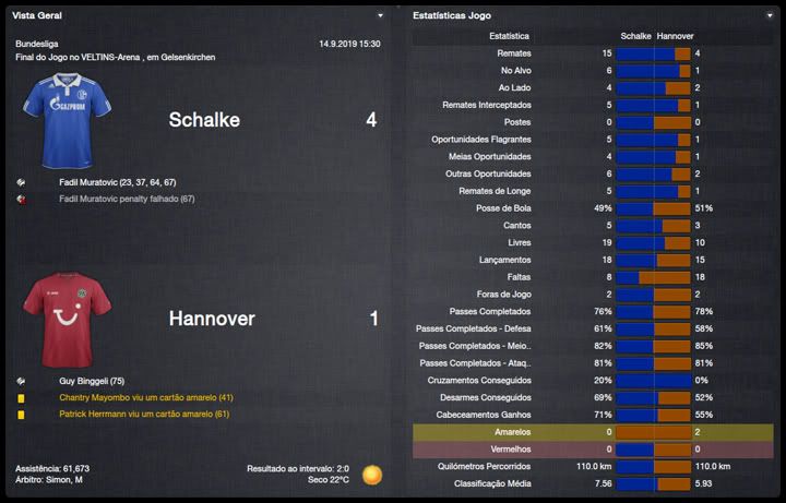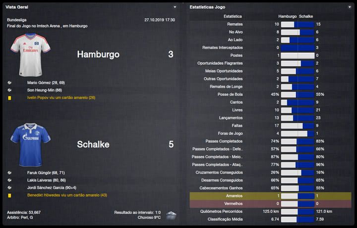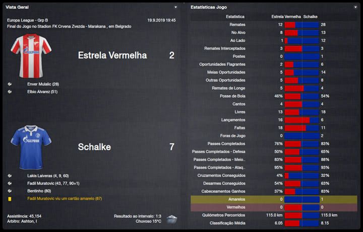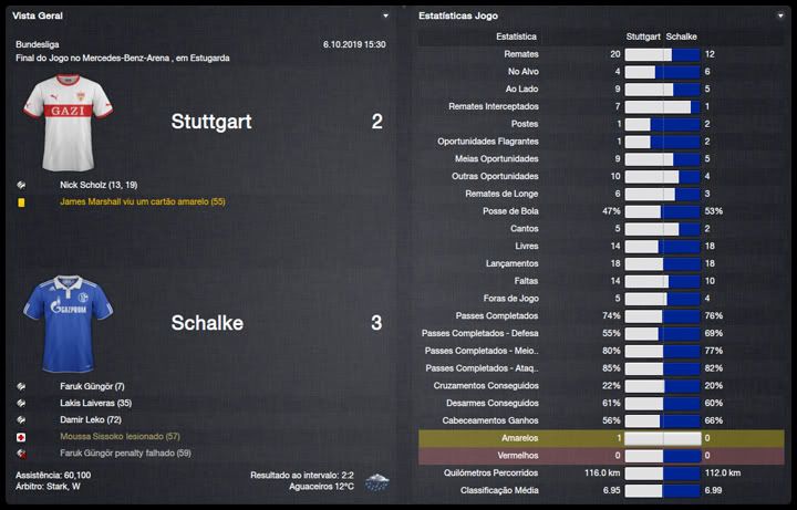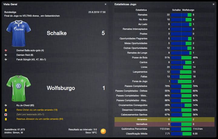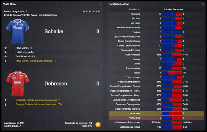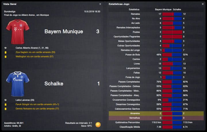 Bruno Trink Postado 11 de Abril 2012 Denunciar Postado 11 de Abril 2012 Ainda estamos em fase de ajustes. O ataque, ainda um pouco amarrado, sem muitas trocas de posição, tem funcionado razoavelmente bem, principalmente o turco Güngör. A defesa, no entanto, tem vacilado bastante. Por erros, empatamos em casa e penamos para conseguir a classificação para a fase de grupos da Europa League. Apesar disso tudo e da estreia com derrota na Bundesliga, vejo muita qualidade no nosso elenco e totais possibilidades de conquistar os três campeonatos que disputaremos nessa temporada. Estamos apenas no início do nosso trabalho no Schalke e temos muita margem para evolução. VfR Aalen | FC Bayern München | FC St. Pauli Maccabi Haifa | VfL Wolfsburg | Maccabi Haifa Confesso que já esperava definir o confronto com o Maccabi Haifa pela 4ª Eliminatória da Europa League na primeira partida na VELTINS-Arena. Só que tivemos mais dificuldades do que eu esperava. O controle do jogo era nosso, chutamos muito ao gol israelense, mas só conseguimos o primeiro gol aos 40 do primeiro tempo. Continuamos em cima tentando ampliar, mas o primeiro vacilo aconteceu e Tomer Swisa empatou. Martelamos o tempo inteiro até conseguir fazer 2 a 1, novamente com o Güngör e parecia que conseguiríamos levar essa pequena vantagem para Haifa, mas Swisa igualou o placar mais uma vez, em outro erro da nossa defesa. No jogo de volta, o panorama foi parecido mas, sem erros da defesa, nosso gol era questão de tempo. Apesar da total superioridade, o gol da classificação só aconteceu no segundo tempo, num chutaço do Sissoko. Temos um grupo razoavelmente tranquilo agora, com Saint-Etienne, Estrela Vermelha e Debrecen. Digo isso na teoria já que o campeão israelense quase nos desclassificou. Mesmo assim, acredito numa classificação para o mata-mata quando, com os times eliminados da Champions League, o verdadeiro campeonato começara para nós. Como eu falei, estreamos da pior maneira possível, contra o Bayern em Munique e eles nos venceram no entrosamento e numa atuação inspirada do Álvarez, artilheiro mexicano. Menos mal que reagimos com duas vitórias, sobre o St.Pauli e o atual campeão, e estamos no "bolo" característico da Bundesliga. Na DFB-Pokal, estreamos com uma vitória magra sobre o Aalen, principalmente se compararmos às goleadas impressionantes que vimos nessa primeira rodada. Mal começou a temporada e já tivemos nosso primeiro problema dentro do elenco. Tomás Podtawski já estava há quatro temporadas no clube, sendo que nas duas últimas participou apenas de três partidas, duas como titular, nenhuma pela Liga. Começou o ano como reserva do Sissoko e logo reclamou que queria jogar. Como, no nosso planejamento, ele seria reserva do Sissoko, achamos por bem não manter um jogador insatisfeito no grupo e aceitamos negociá-lo com o PSV por interessantes €11M. O professor teve que correr no mercado atrás de um substituto e encontrou no Bursaspor o meia Yigit Özünal, titular da seleção turca. Uma pena que ele não poderá atuar na Europa League, por já ter jogado por seu ex-clube, mas será bastante útil nas demais competições. No mais, tudo funcionando bastante bem para um time ainda em formação. O também turco Faruk Güngör tem sido o grande destaque, com sete gols em cinco jogos e está liderando nosso ataque. Na defesa, ainda precisamos de alguns ajustes mas a qualidade dos atletas indica que logo eles se ajustarão ao 4-2-4 do professor Guttmann.