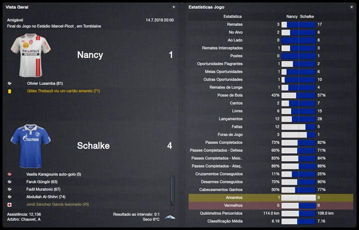 Bruno Trink Postado 10 de Abril 2012 Denunciar Postado 10 de Abril 2012 O México conquistou a Copa América 2019, disputada no Chile, vencendo a grande decisão por 2 a 0 frente a Venezuela, gols de Isaí Valle, atacante do Lyon, e "Chicharito" Hernández, favorito do Manchester United. Na decisão de 3º lugar, o Paraguai venceu o Uruguai por 1 a 0, gol de Fernando Miño. A intenção, quando cheguei ao Schalke, era mexer pouco no elenco, tanto pelas questões financeiras quanto para aproveitar ao máximo o entrosamento, já que sabia que teria as dificuldades naturais pela implantação do meu 4-2-4. Acabamos contratando mais do que imaginávamos, muito fruto das boas oportunidades de negócio que encontramos com jogadores em fim de contrato. Além disso, conseguimos nos capitalizar bem com a venda do atacante Arsène Latoundji, atual artilheiro da seleção de Camarões, mas que nem havia tido grandes chances aqui na temporada passada. O setor direito era, na nossa avaliação, o ponto fraco do grupo e foi onde mais reforçamos. Para a lateral, vieram o experiente De Silvestri, em fim de contrato com o Rennes, e a promessa espanhola Jordi Sánchez García, enquanto que para a direita do ataque trouxemos o inglês Damian Reid, em litígio com o seu treinador no Aston Villa, e o eslovaco Filip Filo. Infelizmente, o Filo teve uma contusão séria nos ligamentos do joelho e tive que compor o elenco com o turco Levent Aycicek. Outro negócio de "ocasião" foi o atacante grego Lakis Laiveras, artilheiro da Bundesliga 2017/18. O jogador tinha uma cláusula de rescisão relativamente baixa para o seu nível e, como tínhamos apenas o Bendtner e alguns garotos para jogar como homem de referência, achei que valia a pena desembolsar os €4,5M da multa. Horak, Scherz e Thiele acabaram sendo contratações-extra que vão de encontro a uma carência que senti nos meus antigos clubes. Muito pela falta de material humano local. sempre formei equipes com muitos estrangeiros. Isso acabou quase me atrapalhando nas competições continentais, quando tive que, em algumas vezes, apelar para as categorias de base para completar um banco de reservas. Com a forte tradição formadora de talentos do futebol alemão, pretendo formar times com, pelo menos, uma base de jogadores locais. Fadil Muratovic | Lorenzo De Silvestri | Lakis Laiveras | Luca Horak | Frederic Scherz | Jordi Sánchez García Stefan Thiele | Filip Filo | Damian Reid | Alexey Karpenko | Levent Aycicek As férias aqui na Alemanha terminaram um pouco depois do que me acostumei na Hungria e na Ucrânia mas, em compensação, a temporada começa também mais tarde. Tivemos um pouco mais de um mês para treinamentos e amistosos e fizemos uma parte da pré-temporada na França onde enfrentamos adversários da Ligue 1 e 2. Fomos ainda convidados para uma partida contra o Manchester City e gostei bastante do que vi. Estrearemos na Bundesliga da pior forma possível, uma ida para a Allianz-Arena para enfrentar aquele que, para mim, é o time a ser batido. Hoje temos nosso primeiro jogo na DFB-Pokal, contra o Aalen, e escalarei um time de reservas. Grenoble Foot 38 | FC Sochaux-Montbéliard | AS Nancy Lorraine | Manchester City Deixem me apresentar: me chamo Eric Black, sou escocês, tenho 55 anos e chego para ser assistente técnico do Schalke 04. Como atacante, joguei no Aberdeen e no Metz e, em onze anos de carreira, fiz quase cem gols, mas um problema nas costas encerrou minha carreira prematuramente. Trabalhei muitos anos como assistente do Steve Bruce mas, com a ida dele para o Tottenham, que já tinha uma profissional permanente, passei o último ano fazendo uma espécie de reciclagem. Espero ter com o professor Guttmann o mesmo sucesso que tive com Bruce. Além de mim, o professor completou o staff técnico com três profissionais que saíram com ele do Metalist, Wesley Visser, Martín Zapata e William Mota, além do treinador de goleios bielorusso Igor Sergeev e o até pouco tempo meia Dusan Petronijevic. Acredito que estrutura e material humano não nos faltará aqui em Gelsenkirchen para fazer do Schalke uma equipe campeã.