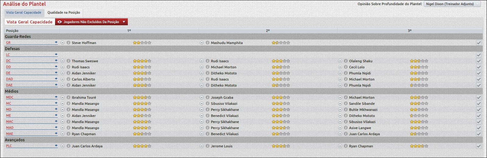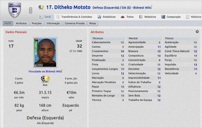 Perdemos três jogadores por aposentadoria: o Baron e o Marlin, ambos goleiros; e o driblador Ngwenya, que deixou o futebol com 32 anos. Isso nos pegou de surpresa, principalmente no que refere aos arqueiros. Felizmente, já vínhamos dando oportunidade ao Hoffman, e já fechamos com um goleiro reserva.