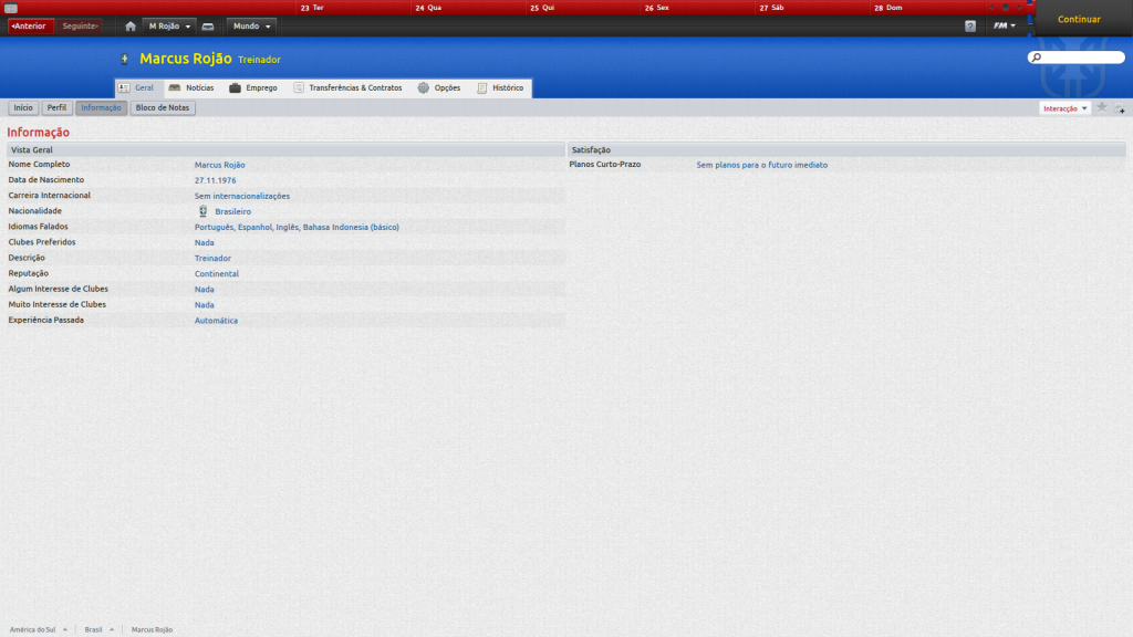 Gostei da sua sugestão, mas pretendo fazer dezessete países originais do jogo neste save e depois fazer os outros em outros dois saves, e aí sim com treinadores e histórias diferentes ( outras versões do FM). A ideia é fazer um giro pelo mundo só com o Rojão, que era a ideia inicial, se faço com os três, a volta ao mundo do Rojão não irá ocorrer.