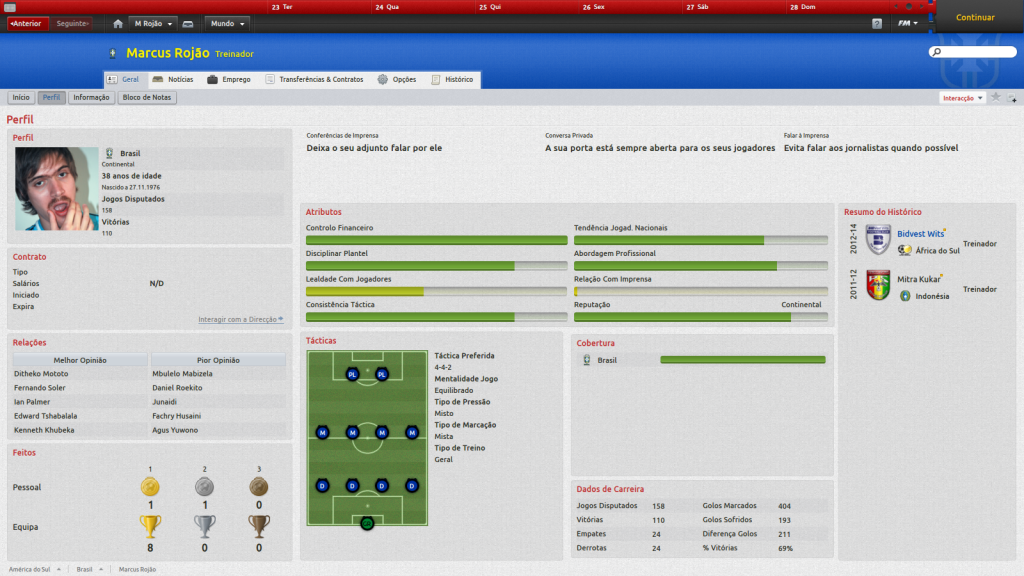 • Perder o histórico da carreira do treinador: isso pesa um pouco, mas não tanto, pois meu interesse é mais pela experiência de novas ligas do que juntar muitos prêmios, alcançar o quadro de honra e etc;