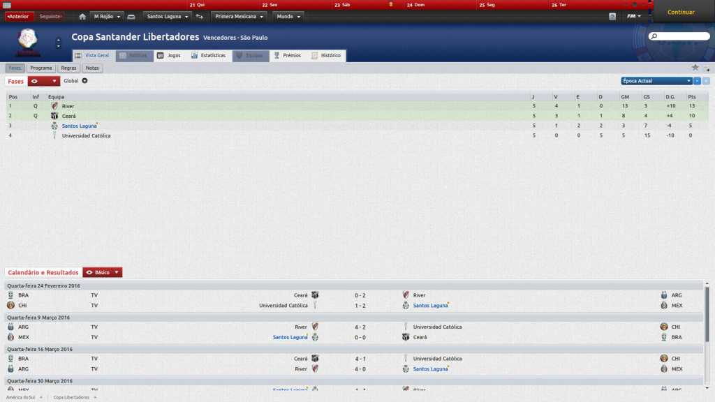 Me surpreendi. Já é uma surpresa ver o Ceará na Libertadores, ainda mais se classificando ao invés do Santos Laguna, hahahaha.