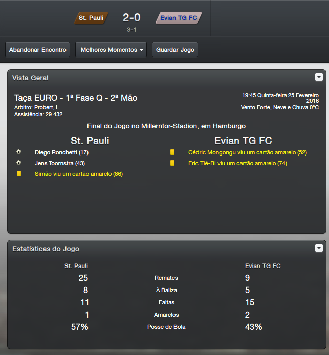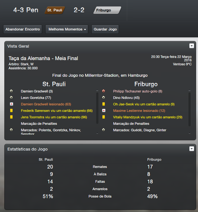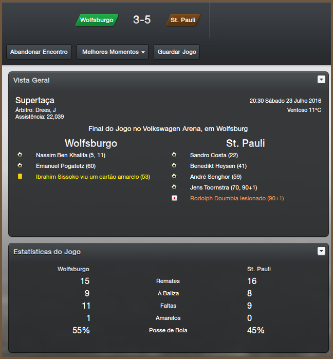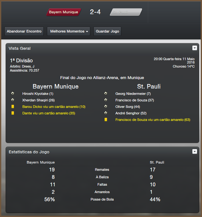 Valeu Renato, quando fui eliminado já havia uma excelente margem na Bundesliga, não foi um problema para lá então. Só tomei um susto na final contra o Wolfsburg, mas felizmente conseguimos a virada.