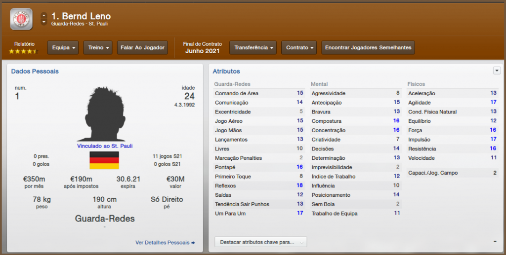Uma nova temporada tem inicio na Alemanha, a temporada que acabou foi especial para o St. Pauli que ganhou os dois titulos nacionais mais importantes, a Bundesliga e a DFB-Pokal. E para que estes titulos pudessem ser defendidos e quem sabe, serem novamente conquistados, acabei não medindo esforços financeiros para contratar um dos melhores goleiros alemães da atualidade. Foi preciso muita lábia para convencer ele a se rebelar contra a direção do time em que estava, usei algumas vezes a frase: "Se quiser crescer profissionalmente, vai ter que sair de lá". E em pouco tempo, Bernd Leno deixou o Bayer Leverkusen e assinou pelo St. Pauli por inacreditáveis £50M, e Manuel Neuer já passou dos 30 anos e em 2018 pode ser a ultima vez dele numa grande competição, portanto tenho plena esperança que seu substituto natural será o Leno, ou o jovem Stegen do Gladbach.