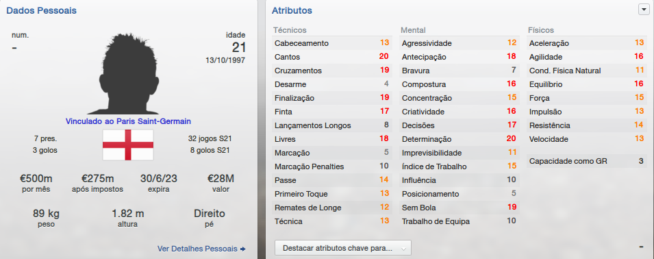 Lesionou mais 2 vezes o inglês. Uma pena, porque é um monstro... falando em atributos.