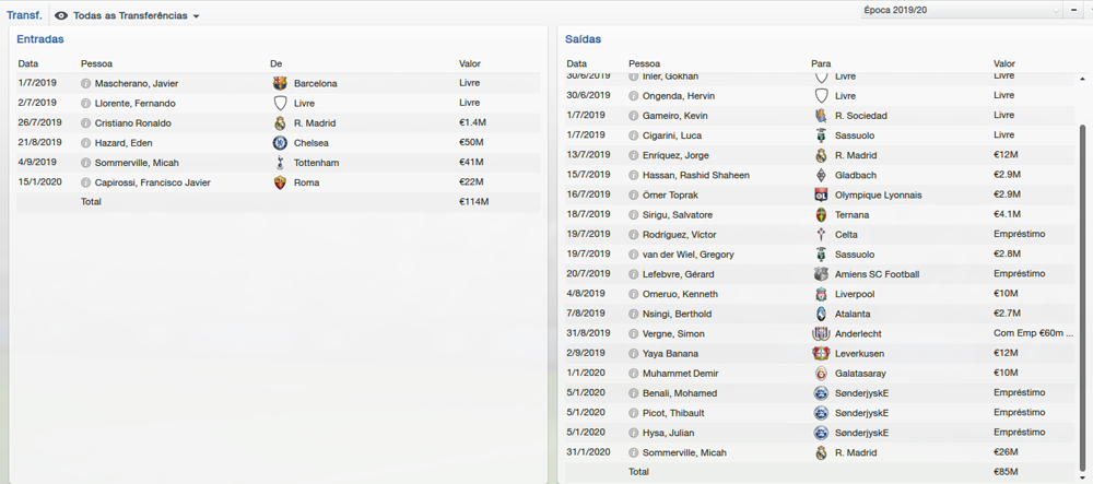 Foquei no ataque, como sempre faço e me arrependo depois. Vou precisar de dois laterais, mas vou deixar isso pra próxima temporada quando eu disputar a UCL. Agora não é questão urgente.