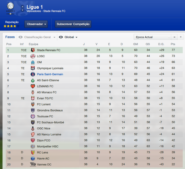 Me empolguei (pra variar) com os jogos e agora já estou quase na reta final do Francês. Passei por um momento de turbulência durante a época da eliminação da Taça da França, mas agora comigo mais atento no FM e mais detalhista/perfeccionista o time voltou à grande forma.