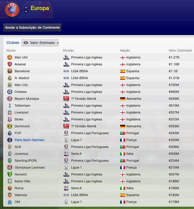 O PSG é o sétimo clube mais bem reputado na Europa e sua situação financeira o deixa na 13ª posição do ranking dos clubes europeus mais ricos. Já me aproveitei da situação e fiz um pedido à direção, o qual foi atendido prontamente: