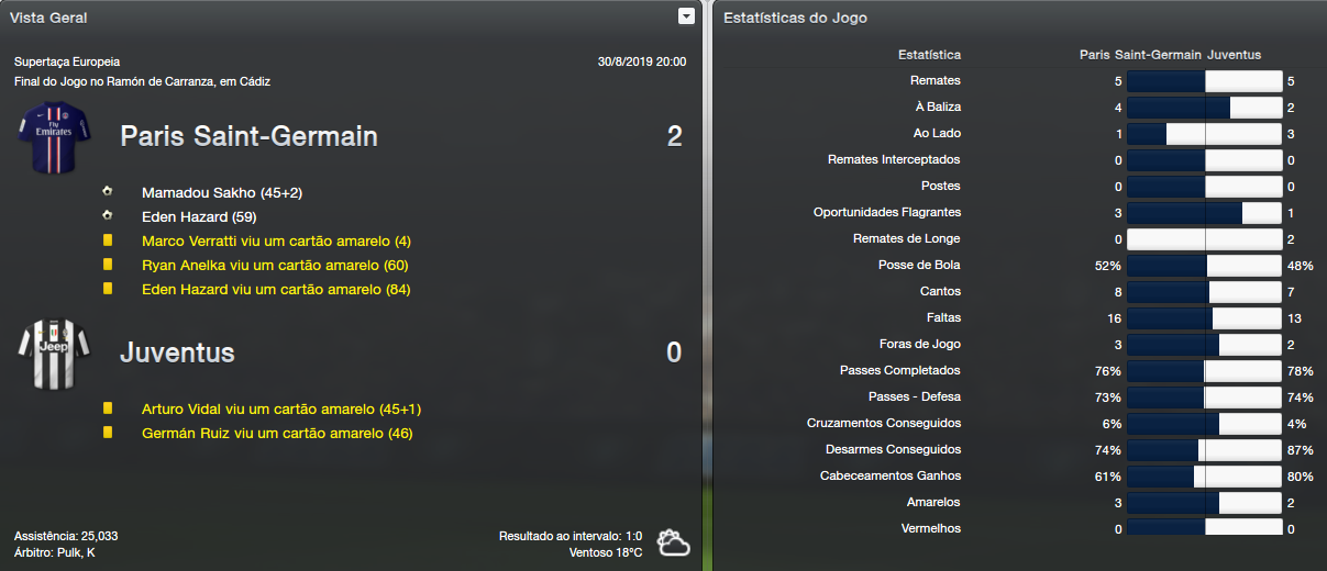 Chegou conquistando um título e com o elenco que tem em mãos, isso é bem importante para dar moral e ânimo aos jogadores. Ainda que sem muita expressão e importância para os clubes europeus, a Supertaça é ótima para um treinador em ascensão conquistar seus objetivos pessoais. Aliás, deu para perceber nas estatísticas que foi um jogo muito truncado e com pouquíssimas chances de gol.