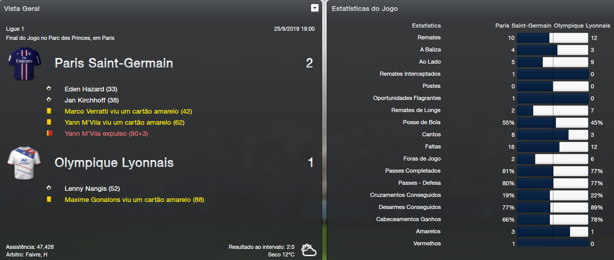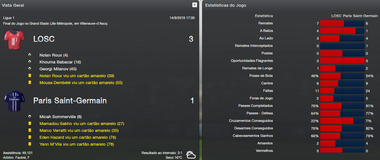 Os jogos destacados foram a minha derrota para o Lille, fora de casa, por um placar que não resumiu bem como foi o jogo, mas merecida derrota e na hora certa; depois, experimentei algumas variações táticas e alguns bons resultados vieram como a vitória sobre o Lyon e o Rennes pelo Francês e a passagem de fase na Taça da Liga.