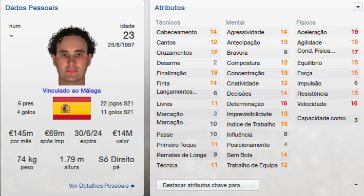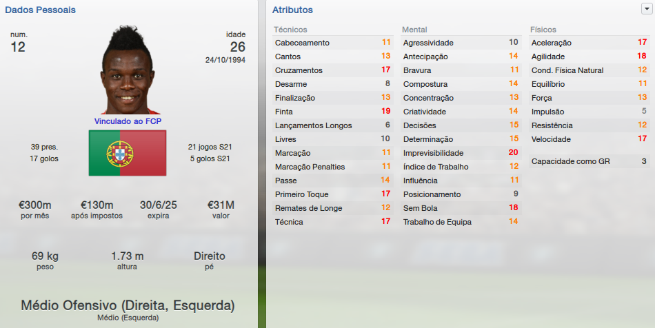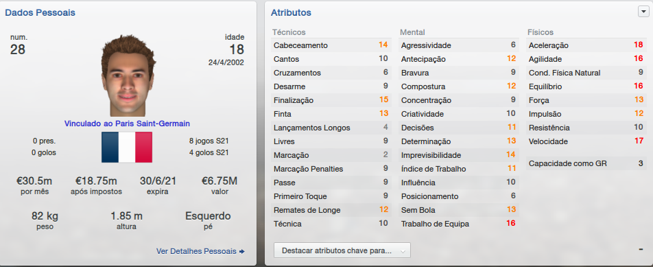 Ao meu ver, o setor mais forte da equipe está no meio pra frente - e principalmente no meio após a chegada de Vergara para completar o time junto de Lucas, Hazard, Verratti e alguns newgens. Gostei da disponobilidade de jovens para o ataque e fiquei curioso com a promessa Dorian Roche. Poderia postar uma SS dele?