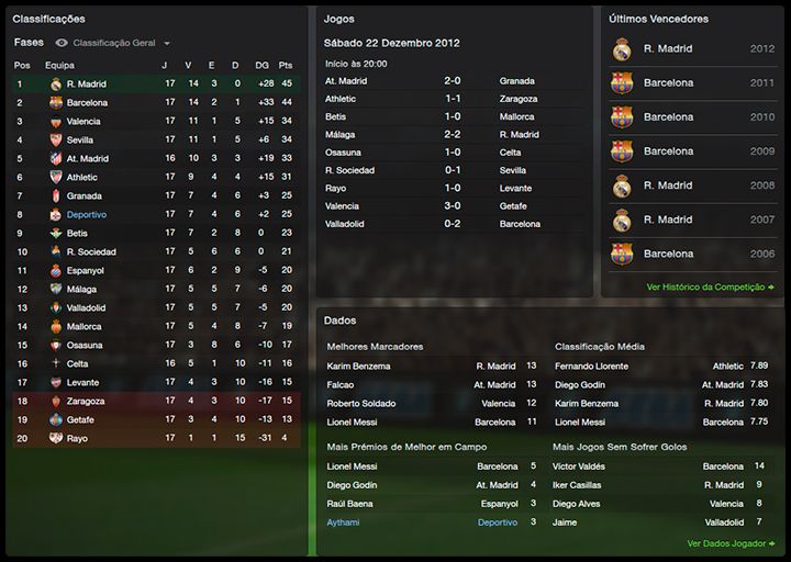 Começou de forma razoável a Liga BBVA, mas era normal pelos adversários que você enfrentou, ainda assim conseguiu um empate honroso contra o R. Madrid dentro do Santiago Bernabéu. Essa vitória no clássico e essa tabela mais acessível no próximo mês podem ajudar o time a se firmar lá pelo meio da tabela.