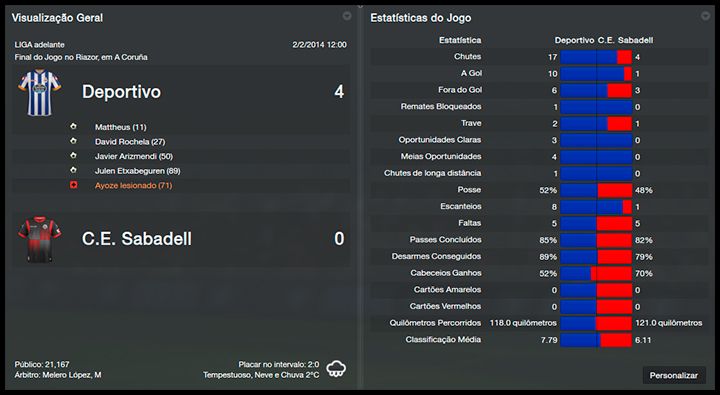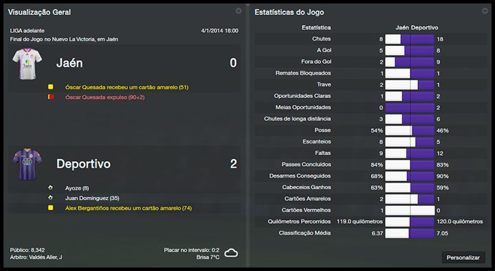 Em condições normais, eu teria feito incursões no mercado nessa janela de transferências de inverno. O time está bem demais no campeonato mas as lesões mostraram que o elenco é limitado. Tive que, algumas vezes, recorrer ao Deportivo "B" para completar os dezoito que foram convocados para determinadas partidas. No entanto, falta dinheiro. Pelo contrário, tivemos baixas. Seoane estava insatisfeito e acabou negociado por empréstimo. Juanjo Camacho, que teve ótimo início de temporada, foi afastado do elenco por motivos contratuais. Havia uma cláusula no seu contrato que forçava a renovação automática assim que ele completasse 20 partidas. Como eu já estava percebendo uma queda na sua performance e a idade está chegando, tentei convencê-lo a abrir mão dessa prerrogativa. Sem sucesso, a única solução foi mesmo parar de escalá-lo, deixando o elenco ainda mais limitado.