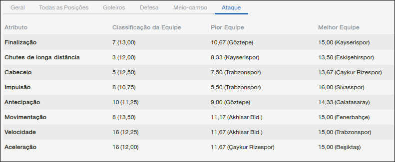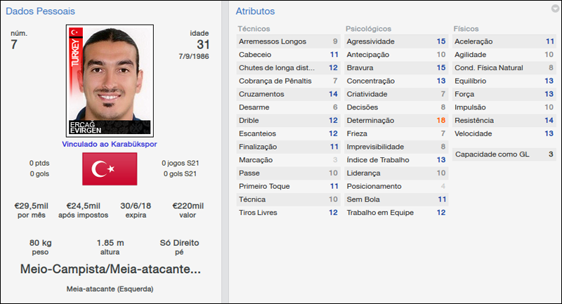 Por último, o melhor jogador do clube na temporada passada, segundo os torcedores: Erçag Evergin. Com 31 anos, o ponta continua sendo a principal fonte de assistências da equipe, seja em cruzamentos, passes ou faltas. No momento são oito assistências e dois gols e a 2ª melhor média do elenco, 7,11.