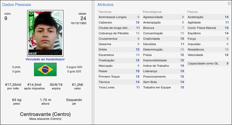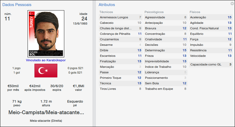 Quem apareceu muito bem é o zagueiro Balioglu. A contratação mais cara (1,2 milhão) do Karabukspor na temporada, o jogador contratado pelo diretor de futebol jogou apenas metade das partidas disputadas, mas tem a melhor média do elenco, 7,16.