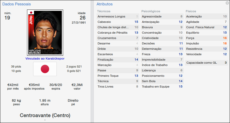 Como exemplo dessa situação cito um atacante contratado para o Karabukspor pelo diretor de futebol. O jogador em questão é Hiroshi Ibusuki, um japonês que provavelmente não contrataria, mas que foi contratado e terei que me virar para fazê-lo render na equipe. Algo, que ao meu ver, só me traz mais desafio e às vezes um sorriso de canto de boca, quando por exemplo, recebo a notícia que o novo contratado aumentou a venda de camisas do clube.