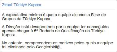 Faltava a última partida do ano, o confronto pela Copa da Turquia contra o Gençlebirligi. O objetivo era passar pelo adversário e alcançar a fase de grupos da competição, o objetivo estabelecido pela direção, mas perdemos por 1 a 0 e fomos eliminados, antes do tempo, na 5ª fase eliminatória.