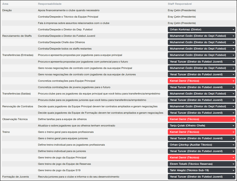 Tenho optado desde o FM passado por manter os jogadores pela maior parte de seus contratos. Geralmente, um jogador só será negociado se pedir para sair, se tiver problemas de contusão ou chegar ao último ano do contrato. Raramente faço algo que fazia muito frequentemente no passado que era vender um jogador, mesmo com um contrato longo ou no início do contrato, se eu percebesse que ele não era o que eu imaginava.