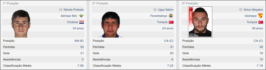 Os premiados do Goztepe na temporada são os seguintes e são apenas três: