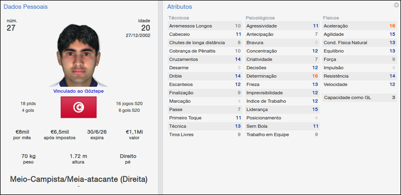 Outro contratado é uma aposta é o jovem tunisino, Amine Hammami, Com 20 jogos pela seleção da Tunísia, ele estreou como o melhor em campo na partida contra o Ankaraspor. Ele tem 2,5 estrelas da CA e 4,5 de CP.