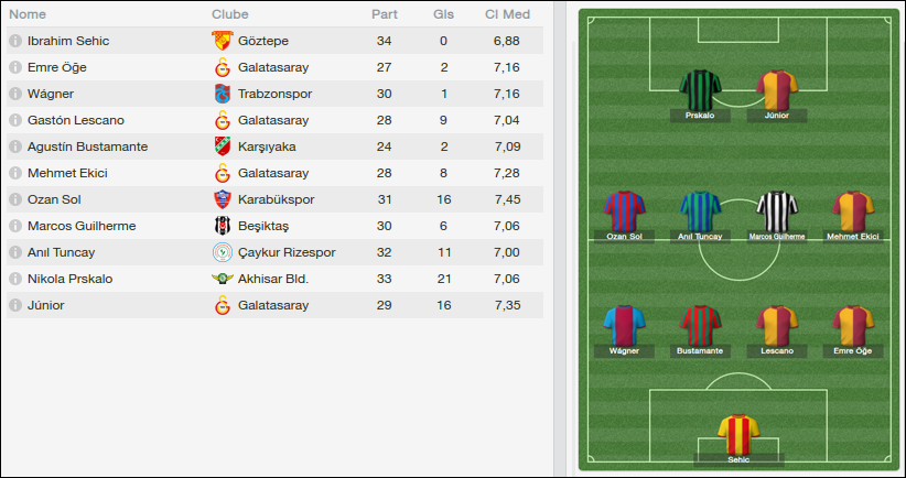 Os outros dois atacantes, Tasdele e Karakus também tem ido bem no ataque. Infelizmente, Karakus se contundiu e se conseguir voltar será para as últimas rodadas da Super Lig.