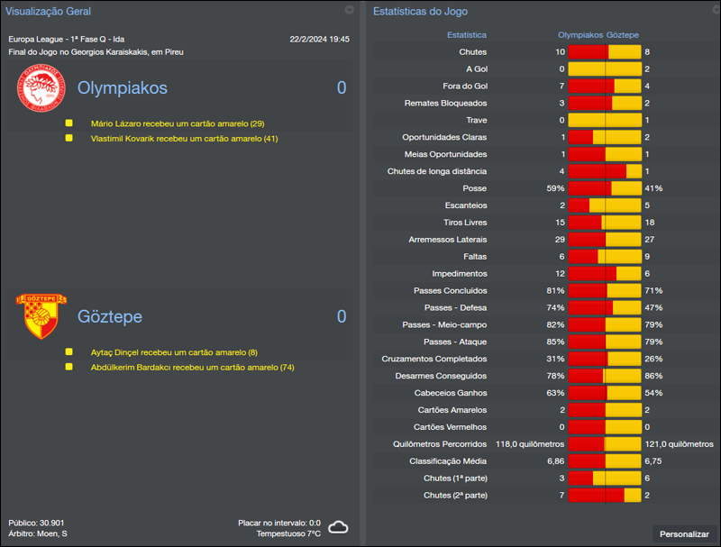As duas últimas partidas de fevereiro foram pela Liga Europa. Em Pireu, enfrentamos o Olympiakos e ficamos no 0 a 0. Na partida de volta, abrimos o placar aos 4, com Angloma, o que nos deu uma maior tranquilidade para definir o placar em 2 a 0.