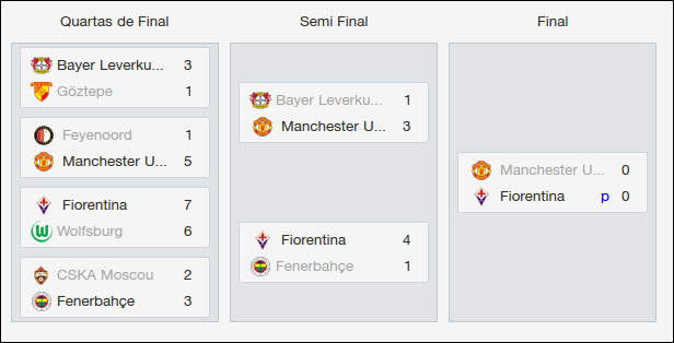 Na partida de volta contra o Leverkusen não conseguimos nos aproximar do adversário, que nos venceu novamente, dessa vez por 1 a 0. Na sequência da Liga Europa, o campeão seria a Fiorentina.