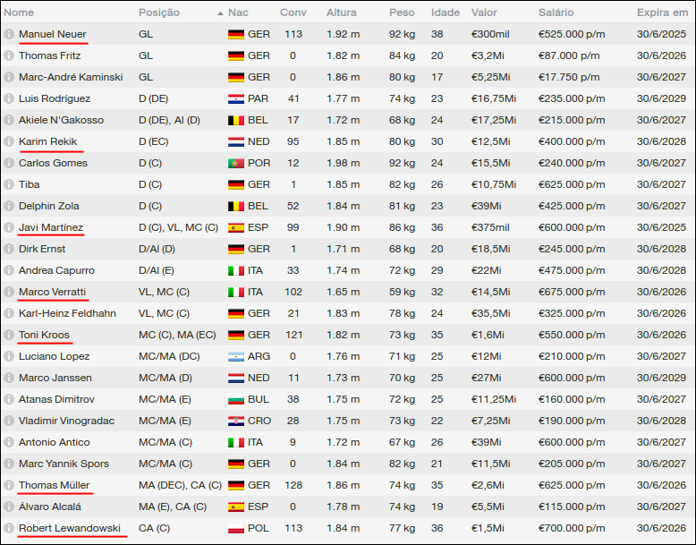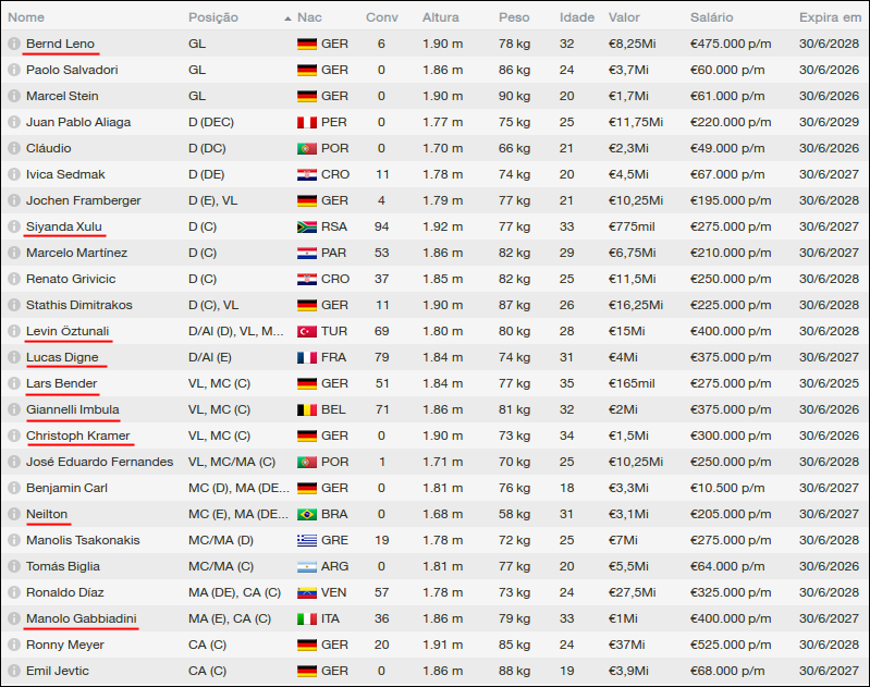 Sendo assim, posso dizer que estou muito satisfeito com os jogadores titulares do elenco do Borussia. O grande problema continua sendo a posição de volante. Ainda não consegui neste save fazer essa posição ter uma média 7.